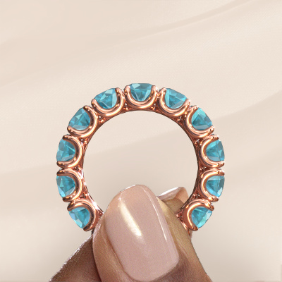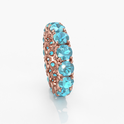 Das ist unser Estee 5.0-Ring. Dieser spezielle Typ wird als eternity Ring bezeichnet und ist mit einer durchgehenden Linie von identisch geschliffenen Edelsteinen besetzt. Er ist aus 14 Karat Roségold und mit kleineren 5 mm Blaue Topas besetzt. Die erstaunlichen Blaue Topas sind identisch in der Größe und im Ringband platziert. Unsere Blaue Topas werden sorgfältig ausgewählt, damit sie identisch sind und somit das beste Ergebnis erzielen. Um das beste Ergebnis zu erzielen, positioniert unser Juwelier alle Blaue Topas von Hand und mit größter Sorgfalt. Unsere Juweliere haben nur ein Ziel, nämlich den perfekten Ring zu kreieren. Deshalb lieben wir, was wir tun. Am Ende bekommen Sie einen atemberaubenden, exklusive Roségold Ring mit einer Reihe von Blaue Topas, die weder Anfang noch Ende zu haben scheinen. Das perfekte Symbol für Ihre unsterbliche Liebe zu ihr! Ist sie nicht eine Schönheit? Haben Sie ein bestimmtes Budget? Sie können uns gerne kontaktieren, damit wir Ihre Optionen besprechen können. Wir bieten unsere Ringe zum garantiert besten Preis, denn wir fertigen sie auf Bestellung. Solche Preise finden Sie nirgendwo anders!Unsere talentierten, leidenschaftlichen Designer fügen unserer Online-Kollektion täglich neue Designs hinzu. Zusammen versuchen sie, eine vielfältige Kollektion feinster Schmuckstücke zu erstellen. Wenn Sie es vorziehen, einen Ring nach Ihrem eigenen Entwurf zu machen, können Sie gerne ein Angebot anfordern. Wir machen Ihnen ein großartiges Angebot, basierend auf Qualität und Preis.Um es einfacher zu machen, bieten wir eine kostenlose 30-tägige Rücksendung.
