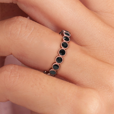 Das ist unser Mariam 0.05-Ring. Dieser spezielle Typ wird als eternity Ring bezeichnet und ist mit einer durchgehenden Linie von identisch geschliffenen Edelsteinen besetzt. Er ist aus 14 Karat Roségold und mit kleineren 0.066 crt Schwarze Diamanten besetzt. Die erstaunlichen Schwarze Diamanten sind identisch in der Größe und im Ringband platziert. Unsere Schwarze Diamanten werden sorgfältig ausgewählt, damit sie identisch sind und somit das beste Ergebnis erzielen. Um das beste Ergebnis zu erzielen, positioniert unser Juwelier alle Schwarze Diamanten von Hand und mit größter Sorgfalt. Unsere Juweliere haben nur ein Ziel, nämlich den perfekten Ring zu kreieren. Deshalb lieben wir, was wir tun. Am Ende bekommen Sie einen atemberaubenden, moderne Roségold Ring mit einer Reihe von Schwarze Diamanten, die weder Anfang noch Ende zu haben scheinen. Das perfekte Symbol für Ihre unsterbliche Liebe zu ihr! Ist sie nicht eine Schönheit? Durch die Kombination modernster Technik mit uralter Handwerkskunst können wir alle Ringe in unserem eigenen Studio anfertigen. Jedes Schmuckstück wird auf Anfrage gefertigt. Das ist vorteilhaft, weil wir Ihnen dadurch einen Preis anbieten können, den Sie nirgendwo anders finden.