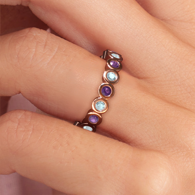 Das ist unser Edwina 2-Ring. Dieser spezielle Typ wird als eternity Ring bezeichnet und ist mit einer durchgehenden Linie von identisch geschliffenen Edelsteinen besetzt. Er ist aus 14 Karat Roségold und mit kleineren 2.5 mm Amethysten besetzt. Die erstaunlichen Amethysten sind identisch in der Größe und im Ringband platziert. Unsere Amethysten werden sorgfältig ausgewählt, damit sie identisch sind und somit das beste Ergebnis erzielen. Um das beste Ergebnis zu erzielen, positioniert unser Juwelier alle Amethysten von Hand und mit größter Sorgfalt. Unsere Juweliere haben nur ein Ziel, nämlich den perfekten Ring zu kreieren. Deshalb lieben wir, was wir tun. Am Ende bekommen Sie einen atemberaubenden, trendige Roségold Vorsteckring mit einer Reihe von Amethysten, die weder Anfang noch Ende zu haben scheinen. Das perfekte Symbol für Ihre unsterbliche Liebe zu ihr! Ist sie nicht eine Schönheit? Mit unserer modernen Technik können wir Schmuckstücke von höchster Qualität mit größter Sorgfalt für Sie entwerfen und anpassen. Unsere Ringe sind immer um 30 Prozent günstiger als bei anderen Juwelieren. Wir fertigen Ringe auf Bestellung, also müssen wir keine großen Lager unterhalten. Wenn Sie ein bestimmtes Budget haben, beraten wir Sie gerne entsprechend.Unsere talentierten, leidenschaftlichen Designer fügen unserer Online-Kollektion täglich neue Designs hinzu. Zusammen versuchen sie, eine vielfältige Kollektion feinster Schmuckstücke zu erstellen. Wenn Sie es vorziehen, einen Ring nach Ihrem eigenen Entwurf zu machen, können Sie gerne ein Angebot anfordern. Wir machen Ihnen ein großartiges Angebot, basierend auf Qualität und Preis.Um es einfacher zu machen, bieten wir eine kostenlose 30-tägige Rücksendung.