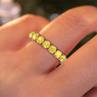 Das ist unser Vivienne 3.4-Ring. Dieser spezielle Typ wird als eternity Ring bezeichnet und ist mit einer durchgehenden Linie von identisch geschliffenen Edelsteinen besetzt. Er ist aus 14 Karat Roségold und mit kleineren 3.4 mm Gelb Saphir besetzt. Die erstaunlichen Gelb Saphir sind identisch in der Größe und im Ringband platziert. Unsere Gelb Saphir werden sorgfältig ausgewählt, damit sie identisch sind und somit das beste Ergebnis erzielen. Um das beste Ergebnis zu erzielen, positioniert unser Juwelier alle Gelb Saphir von Hand und mit größter Sorgfalt. Unsere Juweliere haben nur ein Ziel, nämlich den perfekten Ring zu kreieren. Deshalb lieben wir, was wir tun. Am Ende bekommen Sie einen atemberaubenden, klassische Roségold Vorsteckring mit einer Reihe von Gelb Saphir, die weder Anfang noch Ende zu haben scheinen. Das perfekte Symbol für Ihre unsterbliche Liebe zu ihr! Ist sie nicht eine Schönheit? Haben Sie ein bestimmtes Budget? Sie können uns gerne kontaktieren, damit wir Ihre Optionen besprechen können. Wir bieten unsere Ringe zum garantiert besten Preis, denn wir fertigen sie auf Bestellung. Solche Preise finden Sie nirgendwo anders!Unser Team von talentierten, leidenschaftlichen Designern fügt unserer Online-Kollektion täglich neue Ring-Designs hinzu. Unser Ziel dabei ist es, Ihnen eine große Vielfalt an Schmuckstücken anbieten zu können. Bitte zögern Sie nicht, ein Angebot anzufordern, wenn Sie spezielle Wünsche für Ihren Ring haben. Wir garantieren Ihnen ein Angebot, das Sie nicht ablehnen können.Um es einfacher zu machen, bieten wir eine kostenlose 30-tägige Rücksendung.