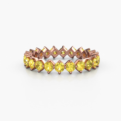 Das ist unser Janie 2.7mm-Ring. Dieser spezielle Typ wird als eternity Ring bezeichnet und ist mit einer durchgehenden Linie von identisch geschliffenen Edelsteinen besetzt. Er ist aus 14 Karat Roségold und mit kleineren 2.7 mm Gelb Saphir besetzt. Die erstaunlichen Gelb Saphir sind identisch in der Größe und im Ringband platziert. Unsere Gelb Saphir werden sorgfältig ausgewählt, damit sie identisch sind und somit das beste Ergebnis erzielen. Um das beste Ergebnis zu erzielen, positioniert unser Juwelier alle Gelb Saphir von Hand und mit größter Sorgfalt. Unsere Juweliere haben nur ein Ziel, nämlich den perfekten Ring zu kreieren. Deshalb lieben wir, was wir tun. Am Ende bekommen Sie einen atemberaubenden, trendige Roségold Vorsteckring mit einer Reihe von Gelb Saphir, die weder Anfang noch Ende zu haben scheinen. Das perfekte Symbol für Ihre unsterbliche Liebe zu ihr! Ist sie nicht eine Schönheit? Durch die Kombination modernster Technik mit uralter Handwerkskunst können wir alle Ringe in unserem eigenen Studio anfertigen. Jedes Schmuckstück wird auf Anfrage gefertigt. Das ist vorteilhaft, weil wir Ihnen dadurch einen Preis anbieten können, den Sie nirgendwo anders finden.