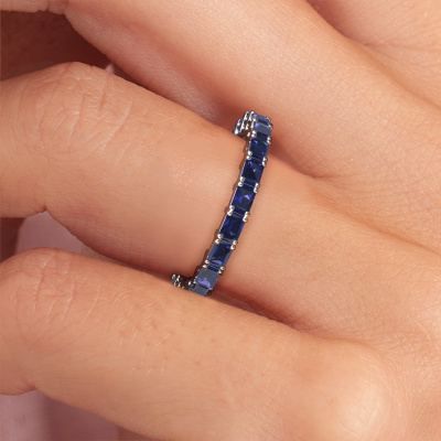 Das ist unser Vivienne EME 3x2-Ring. Dieser spezielle Typ wird als Eternity ring bezeichnet und ist mit einer durchgehenden Linie von identisch geschliffenen Edelsteinen besetzt. Er ist aus 14 Karat Weißgold und mit kleineren Saphir 3x2 mm besetzt. Dieser Weißgold Eternity Ring ist eine wunderschöne und sinnvolle Möglichkeit, Ihrem Antrag eine besondere Note zu verleihen. Die herrlich gleichmäßig geformten Saphir sind rund um den Ring eingefasst. Die identischen Saphir werden sorgfältig ausgewählt, um dem Ring eine maximale Wirkung zu verleihen. Denken Sie daran, dass wir natürliche Ressourcen verwenden. Daher sind kleine Unterschiede zwischen den Steinen üblich. Der besondere Effekt wird durch die präzise Positionierung der Saphir noch verstärkt. Dies erfordert äußerste Präzision und eine geschickte Hand. Für unsere erfahrenen Juweliere ist die pure Leidenschaft. Am Ende bekommen Sie einen Vorsteckring mit einer Reihe von Saphir, die weder Anfang noch Ende zu haben scheinen. Das perfekte Symbol für Ihre Liebe zu ihr! Ist sie nicht eine Schönheit? Nach Erhalt Ihrer Bestellung beginnen unsere Goldschmiede mit Leidenschaft den kreativen Prozess und fertigen Ihren Ring in unserem eigenen Studio. Da wir keine großen Lager haben, werden diese Kosten nicht an Sie weitergegeben. Unsere Preisgestaltung ist der Beweis dafür! Wir bieten Schmuck zum niedrigsten Preis, garantiert.Unsere talentierten, leidenschaftlichen Designer fügen unserer Online-Kollektion täglich neue Designs hinzu. Zusammen versuchen sie, eine vielfältige Kollektion feinster Schmuckstücke zu erstellen. Wenn Sie es vorziehen, einen Ring nach Ihrem eigenen Entwurf zu machen, können Sie gerne ein Angebot anfordern. Wir machen Ihnen ein großartiges Angebot, basierend auf Qualität und Preis.Um es einfacher zu machen, bieten wir eine kostenlose 30-tägige Rücksendung.