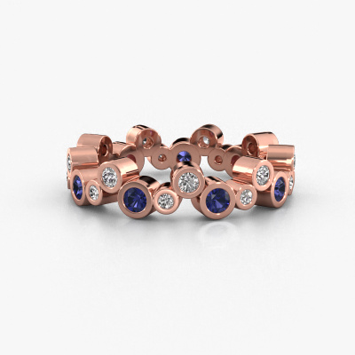 Das ist unser Tessa-Ring. Dieser spezielle Typ wird als Eternity ring bezeichnet und ist mit einer durchgehenden Linie von identisch geschliffenen Edelsteinen besetzt. Er ist aus 14 Karat Roségold und mit kleineren Saphir 2.5 mm besetzt. Dieser Roségold Eternity Ring ist eine wunderschöne und sinnvolle Möglichkeit, Ihrem Antrag eine besondere Note zu verleihen. Die herrlich gleichmäßig geformten Saphir sind rund um den Ring eingefasst. Die identischen Saphir werden sorgfältig ausgewählt, um dem Ring eine maximale Wirkung zu verleihen. Denken Sie daran, dass wir natürliche Ressourcen verwenden. Daher sind kleine Unterschiede zwischen den Steinen üblich. Der besondere Effekt wird durch die präzise Positionierung der Saphir noch verstärkt. Dies erfordert äußerste Präzision und eine geschickte Hand. Für unsere erfahrenen Juweliere ist die pure Leidenschaft. Am Ende bekommen Sie einen Ring mit einer Reihe von Saphir, die weder Anfang noch Ende zu haben scheinen. Das perfekte Symbol für Ihre Liebe zu ihr! Ist sie nicht eine Schönheit? Mit unserer modernen Technik können wir Schmuckstücke von höchster Qualität mit größter Sorgfalt für Sie entwerfen und anpassen. Unsere Ringe sind immer um 30 Prozent günstiger als bei anderen Juwelieren. Wir fertigen Ringe auf Bestellung, also müssen wir keine großen Lager unterhalten. Wenn Sie ein bestimmtes Budget haben, beraten wir Sie gerne entsprechend.Unsere talentierten, leidenschaftlichen Designer fügen unserer Online-Kollektion täglich neue Designs hinzu. Zusammen versuchen sie, eine vielfältige Kollektion feinster Schmuckstücke zu erstellen. Wenn Sie es vorziehen, einen Ring nach Ihrem eigenen Entwurf zu machen, können Sie gerne ein Angebot anfordern. Wir machen Ihnen ein großartiges Angebot, basierend auf Qualität und Preis.Um es einfacher zu machen, bieten wir eine kostenlose 30-tägige Rücksendung.