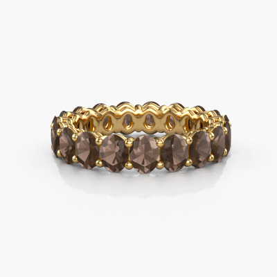 Das ist unser Heddy OVL 3.5x4.5-Ring. Dieser spezielle Typ wird als eternity Ring bezeichnet und ist mit einer durchgehenden Linie von identisch geschliffenen Edelsteinen besetzt. Er ist aus 14 Karat Gold und mit kleineren 4.5x3.5 mm Rauchquarz besetzt. Die erstaunlichen Rauchquarz sind identisch in der Größe und im Ringband platziert. Unsere Rauchquarz werden sorgfältig ausgewählt, damit sie identisch sind und somit das beste Ergebnis erzielen. Um das beste Ergebnis zu erzielen, positioniert unser Juwelier alle Rauchquarz von Hand und mit größter Sorgfalt. Unsere Juweliere haben nur ein Ziel, nämlich den perfekten Ring zu kreieren. Deshalb lieben wir, was wir tun. Am Ende bekommen Sie einen atemberaubenden, Fantasie Gold Vorsteckring mit einer Reihe von Rauchquarz, die weder Anfang noch Ende zu haben scheinen. Das perfekte Symbol für Ihre unsterbliche Liebe zu ihr! Ist sie nicht eine Schönheit? Durch die Kombination modernster Technik mit uralter Handwerkskunst können wir alle Ringe in unserem eigenen Studio anfertigen. Jedes Schmuckstück wird auf Anfrage gefertigt. Das ist vorteilhaft, weil wir Ihnen dadurch einen Preis anbieten können, den Sie nirgendwo anders finden.Unser Team von talentierten, leidenschaftlichen Designern fügt unserer Online-Kollektion täglich neue Ringe-Designs hinzu. Unser Ziel dabei ist es, Ihnen eine große Vielfalt an Schmuckstücken anbieten zu können. Bitte zögern Sie nicht, ein Angebot anzufordern, wenn Sie spezielle Wünsche für Ihren Ring haben. Wir garantieren Ihnen ein Angebot, das Sie nicht ablehnen können.Um es einfacher zu machen, bieten wir eine kostenlose 30-tägige Rücksendung.