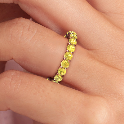 Das ist unser Michelle full 3.0-Ring. Dieser spezielle Typ wird als eternity Ring bezeichnet und ist mit einer durchgehenden Linie von identisch geschliffenen Edelsteinen besetzt. Er ist aus 14 Karat Roségold und mit kleineren 3 mm Gelb Saphir besetzt. Die erstaunlichen Gelb Saphir sind identisch in der Größe und im Ringband platziert. Unsere Gelb Saphir werden sorgfältig ausgewählt, damit sie identisch sind und somit das beste Ergebnis erzielen. Um das beste Ergebnis zu erzielen, positioniert unser Juwelier alle Gelb Saphir von Hand und mit größter Sorgfalt. Unsere Juweliere haben nur ein Ziel, nämlich den perfekten Ring zu kreieren. Deshalb lieben wir, was wir tun. Am Ende bekommen Sie einen atemberaubenden, klassische Roségold Vorsteckring mit einer Reihe von Gelb Saphir, die weder Anfang noch Ende zu haben scheinen. Das perfekte Symbol für Ihre unsterbliche Liebe zu ihr! Ist sie nicht eine Schönheit? Da wir unsere eigenen Ringe entwerfen und liefern, können wir Ihnen einen Ring zu einem Preis anbieten, den Sie nirgendwo anders finden. Ein Ring wird auf Bestellung angefertigt, wodurch kein überschüssiges Material anfällt. So können wir Ihnen ein gutes Angebot zum besten Preis machen. Wir verstehen, dass es sich riskant anfühlt, Ihren Ring online zu kaufen. Jedoch helfen wir Ihnen gerne beim Designprozess unter Berücksichtigung Ihres Budgets.Unsere talentierten, leidenschaftlichen Designer fügen unserer Online-Kollektion täglich neue Designs hinzu. Zusammen versuchen sie, eine vielfältige Kollektion feinster Schmuckstücke zu erstellen. Wenn Sie es vorziehen, einen Ring nach Ihrem eigenen Entwurf zu machen, können Sie gerne ein Angebot anfordern. Wir machen Ihnen ein großartiges Angebot, basierend auf Qualität und Preis.Um es einfacher zu machen, bieten wir eine kostenlose 30-tägige Rücksendung.