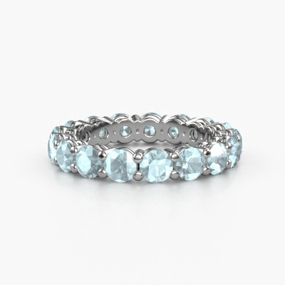 Das ist unser Michelle full 3.7-Ring. Dieser spezielle Typ wird als eternity Ring bezeichnet und ist mit einer durchgehenden Linie von identisch geschliffenen Edelsteinen besetzt. Er ist aus 14 Karat Weißgold und mit kleineren 3.7 mm Aquamarins besetzt. Die erstaunlichen Aquamarins sind identisch in der Größe und im Ringband platziert. Unsere Aquamarins werden sorgfältig ausgewählt, damit sie identisch sind und somit das beste Ergebnis erzielen. Um das beste Ergebnis zu erzielen, positioniert unser Juwelier alle Aquamarins von Hand und mit größter Sorgfalt. Unsere Juweliere haben nur ein Ziel, nämlich den perfekten Ring zu kreieren. Deshalb lieben wir, was wir tun. Am Ende bekommen Sie einen atemberaubenden, moderne Weißgold Vorsteckring mit einer Reihe von Aquamarins, die weder Anfang noch Ende zu haben scheinen. Das perfekte Symbol für Ihre unsterbliche Liebe zu ihr! Ist sie nicht eine Schönheit? Da wir unsere eigenen Ringe entwerfen und liefern, können wir Ihnen einen Ring zu einem Preis anbieten, den Sie nirgendwo anders finden. Ein Ring wird auf Bestellung angefertigt, wodurch kein überschüssiges Material anfällt. So können wir Ihnen ein gutes Angebot zum besten Preis machen. Wir verstehen, dass es sich riskant anfühlt, Ihren Ring online zu kaufen. Jedoch helfen wir Ihnen gerne beim Designprozess unter Berücksichtigung Ihres Budgets.Unser Team von talentierten, leidenschaftlichen Designern fügt unserer Online-Kollektion täglich neue Ringe-Designs hinzu. Unser Ziel dabei ist es, Ihnen eine große Vielfalt an Schmuckstücken anbieten zu können. Bitte zögern Sie nicht, ein Angebot anzufordern, wenn Sie spezielle Wünsche für Ihren Ring haben. Wir garantieren Ihnen ein Angebot, das Sie nicht ablehnen können.Um es einfacher zu machen, bieten wir eine kostenlose 30-tägige Rücksendung.