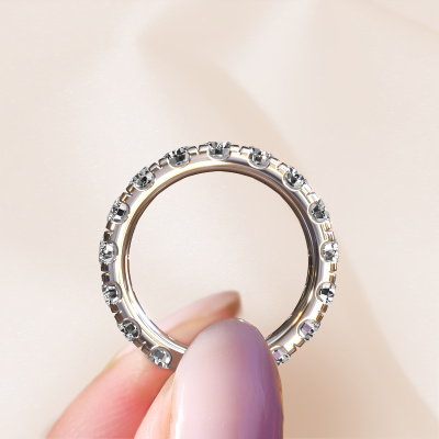 Das ist unser Jackie 3.7-Ring. Dieser spezielle Typ wird als eternity Ring bezeichnet und ist mit einer durchgehenden Linie von identisch geschliffenen Edelsteinen besetzt. Er ist aus 14 Karat Weißgold und mit kleineren 0.20 crt Diamanten besetzt. Die erstaunlichen Diamanten sind identisch in der Größe und im Ringband platziert. Unsere Diamanten werden sorgfältig ausgewählt, damit sie identisch sind und somit das beste Ergebnis erzielen. Um das beste Ergebnis zu erzielen, positioniert unser Juwelier alle Diamanten von Hand und mit größter Sorgfalt. Unsere Juweliere haben nur ein Ziel, nämlich den perfekten Ring zu kreieren. Deshalb lieben wir, was wir tun. Am Ende bekommen Sie einen atemberaubenden, moderne Weißgold Vorsteckring mit einer Reihe von Diamanten, die weder Anfang noch Ende zu haben scheinen. Das perfekte Symbol für Ihre unsterbliche Liebe zu ihr! Ist sie nicht eine Schönheit? Mit unserer modernen Technik können wir Schmuckstücke von höchster Qualität mit größter Sorgfalt für Sie entwerfen und anpassen. Unsere Ringe sind immer um 30 Prozent günstiger als bei anderen Juwelieren. Wir fertigen Ringe auf Bestellung, also müssen wir keine großen Lager unterhalten. Wenn Sie ein bestimmtes Budget haben, beraten wir Sie gerne entsprechend.Unsere Online-Kollektion wird täglich um neue Schmuckdesigns ergänzt. Unser Team von leidenschaftlichen Designern ist bemüht, außergewöhnliche und vielfältige Designs zu kreieren. Haben Sie einen Ring gesehen, der Ihnen gefällt? Setzen Sie sich mit uns in Verbindung. Basierend auf einem guten Preis/Leistungsverhältnis machen wir Ihnen ein Angebot, das Sie nicht ablehnen können!Um es einfacher zu machen, bieten wir eine kostenlose 30-tägige Rücksendung.