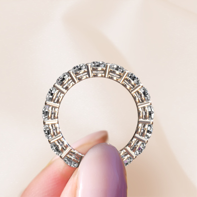 Das ist unser Michelle full 3.7-Ring. Dieser spezielle Typ wird als eternity Ring bezeichnet und ist mit einer durchgehenden Linie von identisch geschliffenen Edelsteinen besetzt. Er ist aus 14 Karat Weißgold und mit kleineren 0.20 crt Diamanten besetzt. Die erstaunlichen Diamanten sind identisch in der Größe und im Ringband platziert. Unsere Diamanten werden sorgfältig ausgewählt, damit sie identisch sind und somit das beste Ergebnis erzielen. Um das beste Ergebnis zu erzielen, positioniert unser Juwelier alle Diamanten von Hand und mit größter Sorgfalt. Unsere Juweliere haben nur ein Ziel, nämlich den perfekten Ring zu kreieren. Deshalb lieben wir, was wir tun. Am Ende bekommen Sie einen atemberaubenden, moderne Weißgold Vorsteckring mit einer Reihe von Diamanten, die weder Anfang noch Ende zu haben scheinen. Das perfekte Symbol für Ihre unsterbliche Liebe zu ihr! Ist sie nicht eine Schönheit? Da wir unsere eigenen Ringe entwerfen und liefern, können wir Ihnen einen Ring zu einem Preis anbieten, den Sie nirgendwo anders finden. Ein Ring wird auf Bestellung angefertigt, wodurch kein überschüssiges Material anfällt. So können wir Ihnen ein gutes Angebot zum besten Preis machen. Wir verstehen, dass es sich riskant anfühlt, Ihren Ring online zu kaufen. Jedoch helfen wir Ihnen gerne beim Designprozess unter Berücksichtigung Ihres Budgets.Unser Team von talentierten, leidenschaftlichen Designern fügt unserer Online-Kollektion täglich neue Ringe-Designs hinzu. Unser Ziel dabei ist es, Ihnen eine große Vielfalt an Schmuckstücken anbieten zu können. Bitte zögern Sie nicht, ein Angebot anzufordern, wenn Sie spezielle Wünsche für Ihren Ring haben. Wir garantieren Ihnen ein Angebot, das Sie nicht ablehnen können.Um es einfacher zu machen, bieten wir eine kostenlose 30-tägige Rücksendung.
