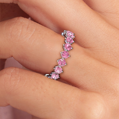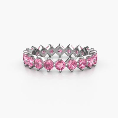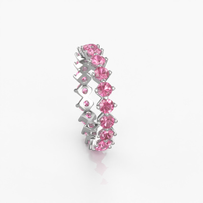 Das ist unser Janie 3.0mm-Ring. Dieser spezielle Typ wird als eternity Ring bezeichnet und ist mit einer durchgehenden Linie von identisch geschliffenen Edelsteinen besetzt. Er ist aus 14 Karat Weißgold und mit kleineren 3 mm Pink Saphir besetzt. Die erstaunlichen Pink Saphir sind identisch in der Größe und im Ringband platziert. Unsere Pink Saphir werden sorgfältig ausgewählt, damit sie identisch sind und somit das beste Ergebnis erzielen. Um das beste Ergebnis zu erzielen, positioniert unser Juwelier alle Pink Saphir von Hand und mit größter Sorgfalt. Unsere Juweliere haben nur ein Ziel, nämlich den perfekten Ring zu kreieren. Deshalb lieben wir, was wir tun. Am Ende bekommen Sie einen atemberaubenden, Fantasie Weißgold Vorsteckring mit einer Reihe von Pink Saphir, die weder Anfang noch Ende zu haben scheinen. Das perfekte Symbol für Ihre unsterbliche Liebe zu ihr! Ist sie nicht eine Schönheit? Durch die Kombination modernster Technik mit uralter Handwerkskunst können wir alle Ringe in unserem eigenen Studio anfertigen. Jedes Schmuckstück wird auf Anfrage gefertigt. Das ist vorteilhaft, weil wir Ihnen dadurch einen Preis anbieten können, den Sie nirgendwo anders finden.