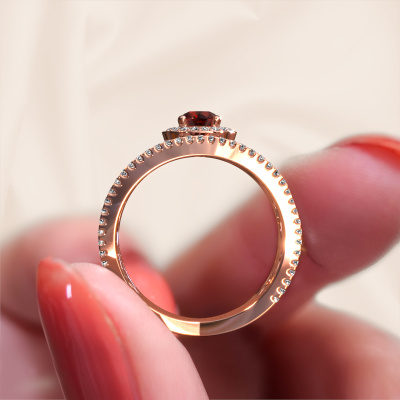 Dieser exklusive Roségold Regina Ring ist ein wahres Kunstwerk! Dieser Ring besteht aus 14 Karat Roségold und ist mit 4.2 mm rund Granat besetzt. Die kleinsten Ornamente werden mit viel Geduld und großer Leidenschaft von unserem Goldschiede gefertigt. Um diesen Ring mit großer Präzision zu schaffen, erfordert dieses Handwerk ein scharfes Auge und eine geschickte Hand. Eine Herausforderung, die bei unseren erfahrenen Goldschmieden eine Leidenschaft entfacht. Die exquisiten Granat sind so gesetzt, dass ihre einzigartigen Qualitäten verstärkt werden. Dies verleiht dem Ring eine noch glamouröse Erscheinung. Der Ring ist für sich einzigartig, wegen der natürlichen Edelsteine, die wir speziell für diesen Regina Ring ausgewählt haben. Und indem Sie das Edelmetall selbst auswählen, kreieren Sie einen einzigartigen Ring. Wie gefällt Ihnen dieser exklusive Roségold Ring? Passen Sie diesen Regina Ring einfach mit unserem Online-Tool an. Anschließend wird Ihr persönlicher, besondere Regina Ring in Handarbeit von unseren Goldschmieden angefertigt. Edelmetalle und Edelsteine können nach Ihren Wünschen angepasst werden. Haben Sie spezielle Wünsche, die in unserem Online-Tool nicht verfügbar sind? Setzen Sie sich mit uns in Verbindung. Wir passen Ihren persönlichen exklusive Ring nach Ihren Wünschen an.Mit unserer modernen Technik können wir Schmuckstücke von höchster Qualität mit größter Sorgfalt für Sie entwerfen und anpassen. Unsere Ringe sind immer um 30 Prozent günstiger als bei anderen Juwelieren. Wir fertigen Ringe auf Bestellung, also müssen wir keine großen Lager unterhalten. Wenn Sie ein bestimmtes Budget haben, beraten wir Sie gerne entsprechend.Um es einfacher zu machen, bieten wir eine kostenlose 30-tägige Rücksendung.
