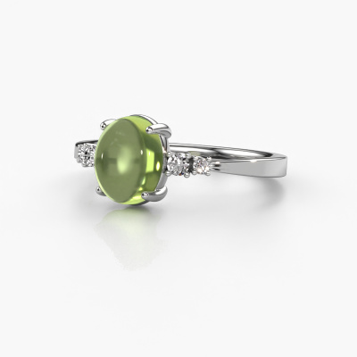 In diesem Foto ist der Platin Jelke Ring mit einem 8x6 mm oval cabochon Peridot besetzt. Cabochon bedeutet, dass ein Peridot zuerst geformt, nicht facettiert wird. Nämlich in eine bestimmte Form wie einen Tropfen, ein Herz oder ein oval cabochon. Anschließend wird er poliert, bis der Edelstein eine Runde Oberfläche hat. Ein Cabochon-Edelstein ist ein atemberaubender, nobler Blickfang, der perfekt zu einem zeitgenössischen wie auch zu einem Vintage-Stil passt. Unsere erfahrenen Goldschmiede formen den gewagte Ring bis zur Perfektion und machen ihn einzigartig. Der Cabochon Peridot ist so gefasst, dass seine einzigartigen Qualitäten verstärkt werden. Passen Sie Ihr eigenes, gewagte Jelke Ring das dann von unseren Goldschmieden mit großer Leidenschaft angefertigt wird. Bevorzugen Sie eine andere Option, als hier beim Platin Jelke Ring? Dann bieten unsere Online-Tools verschiedene Möglichkeiten. Sie können uns jederzeit gerne um Hilfe fragen, wenn Sie nicht weiterkommen. Gerne beantworten wir Ihnen alle offenen Fragen!Mit unserer modernen Technik können wir Schmuckstücke von höchster Qualität mit größter Sorgfalt für Sie entwerfen und anpassen. Unsere Ringe sind immer um 30 Prozent günstiger als bei anderen Juwelieren. Wir fertigen Ringe auf Bestellung, also müssen wir keine großen Lager unterhalten. Wenn Sie ein bestimmtes Budget haben, beraten wir Sie gerne entsprechend.Um es einfacher zu machen, bieten wir eine kostenlose 30-tägige Rücksendung.