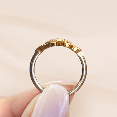Dieser symbolische, Weißgold Rowie Ring wird mit Pink Saphir besetzt. Für einige ist ein Ring nicht mehr als ein schönes Modeartikel, aber sie können auch ein bedeutungsvolles Andenken werden. Ein solcher Ring kann täglich getragen werden und passt zu vielen verschiedenen Stilen. Entwerfen Sie Ihren eigenen einzigartigen Ring, machen Sie ihn noch spezieller. Sie werden jedes Mal an seine Einzigartigkeit erinnert, wenn Sie ihn ansehen. Vielleicht erinnert er Sie an jemand besonderen. Er könnte Erinnerungen wecken. Unvergessliche Momente, festgehalten in einem Ring. Das Schöne daran ist, dass die verwendeten Edelmetalle und Edelsteine ein Leben lang halten. Ein Leben voller Erinnerungen verdient nichts weniger!Passen Sie Ihr eigenes, Hertz rowie Ring das dann von unseren Goldschmieden mit großer Leidenschaft angefertigt wird. Bevorzugen Sie eine andere Option, als hier beim Weißgold rowie Ring? Dann bieten unsere Online-Tools verschiedene Möglichkeiten. Sie können uns jederzeit gerne um Hilfe fragen, wenn Sie nicht weiterkommen. Gerne beantworten wir Ihnen alle offenen Fragen!Mit unserer modernen Technik können wir Schmuckstücke von höchster Qualität mit größter Sorgfalt für Sie entwerfen und anpassen. Unsere Ringe sind immer um 30 Prozent günstiger als bei anderen Juwelieren. Wir fertigen Ringe auf Bestellung, also müssen wir keine großen Lager unterhalten. Wenn Sie ein bestimmtes Budget haben, beraten wir Sie gerne entsprechend.Um es einfacher zu machen, bieten wir eine kostenlose 30-tägige Rücksendung.