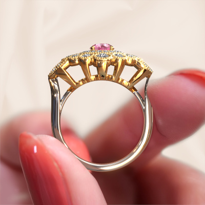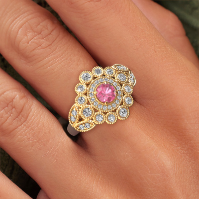 Haben Sie einen Vintage-Fetisch? Dann passt dieser Weißgold Ring perfekt zu Ihnen. Er hat ein zeitgemäßes Design, basierend auf klassischen Designs. Ein leicht romantisches, außergewöhnliches Design! Sogar noch mehr, wenn Sie ihn nach Ihren Wünschen anpassen. Dieser Flower Elia Ring ist mit exquisiten Pink Saphir besetzt. Wie Sie sehen können, können Sie einfach einen Edelstein wählen, der zu Ihrem Stil passt. Jeder Edelstein wird sorgfältig von unseren Händlern ausgewählt, die auf der ganzen Welt verteilt sind. Nichts als die besten Edelsteine für unseren erfahrenen Goldschiede! Schließlich ist es seine Krönung!Unsere Goldschmiede kreieren Ihren individuellen Ring leidenschaftlich, mit größter Sorgfalt und nach Ihren Wünschen. Das Weißgold Ring, wie hier abgebildet, kann mit unserem Online-Tool individuell angepasst werden. Bitte fragen Sie unsere Schmuckdesigner um Hilfe, wenn Sie Änderungen wünsche, die in unserem Online-Tool nicht verfügbar sind. Gerne beantworten wir Ihnen alle offenen Fragen.Da wir unsere eigenen Ringe entwerfen und liefern, können wir Ihnen einen Ring zu einem Preis anbieten, den Sie nirgendwo anders finden. Ein Ring wird auf Bestellung angefertigt, wodurch kein überschüssiges Material anfällt. So können wir Ihnen ein gutes Angebot zum besten Preis machen. Wir verstehen, dass es sich riskant anfühlt, Ihren Ring online zu kaufen. Jedoch helfen wir Ihnen gerne beim Designprozess unter Berücksichtigung Ihres Budgets.Um es einfacher zu machen, bieten wir eine kostenlose 30-tägige Rücksendung.