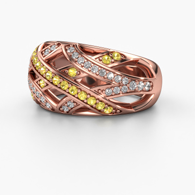 Dieser Ring namens Yinthe besteht aus 14 Karat Roségold und ist mit Gelb Saphir besetzt. Sind Sie auf der Suche nach einem einzigartigen Roségold Ring mit moderner Note? Dann könnte dieser Ring zu Ihnen passen. Einfach nach Ihren Wünschen anpassen. Er passt zur zeitgenössischen, modernen Frau. Dieser gegenwärtige Ring ist mit wunderschönen Gelb Saphir besetzt. Er wurde sorgfältig ausgewählt. Weil Ihr Ring mit nichts als dem atemberaubendsten Edelstein gekrönt werden soll. Unser erfahrener Goldschiede kreiert Ihren Ring in unserem eigenen Studio, wo der Gelb Saphir mit großer Sorgfalt gesetzt wird. Der Ring wird dann perfekt poliert, um einen atemberaubenden Ring zu erhalten. Mit unserer modernen Technik können wir Schmuckstücke von höchster Qualität mit größter Sorgfalt für Sie entwerfen und anpassen. Unsere Ringe sind immer um 30 Prozent günstiger als bei anderen Juwelieren. Wir fertigen Ringe auf Bestellung, also müssen wir keine großen Lager unterhalten. Wenn Sie ein bestimmtes Budget haben, beraten wir Sie gerne entsprechend.Unsere talentierten, leidenschaftlichen Designer fügen unserer Online-Kollektion täglich neue Designs hinzu. Zusammen versuchen sie, eine vielfältige Kollektion feinster Schmuckstücke zu erstellen. Wenn Sie es vorziehen, einen Ring nach Ihrem eigenen Entwurf zu machen, können Sie gerne ein Angebot anfordern. Wir machen Ihnen ein großartiges Angebot, basierend auf Qualität und Preis.Um es einfacher zu machen, bieten wir eine kostenlose 30-tägige Rücksendung.