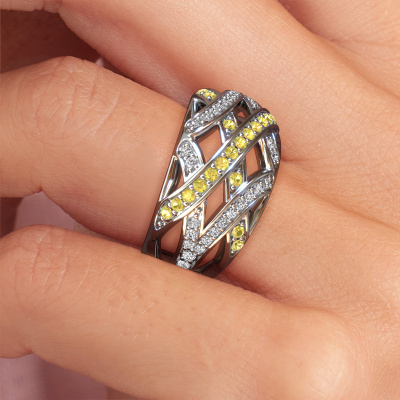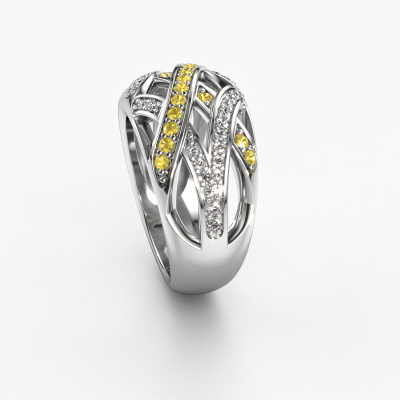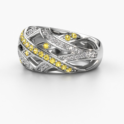Dieser Ring namens Yinthe besteht aus 14 Karat Weißgold und ist mit Gelb Saphir besetzt. Sind Sie auf der Suche nach einem einzigartigen Weißgold Ring mit moderner Note? Dann könnte dieser Ring zu Ihnen passen. Einfach nach Ihren Wünschen anpassen. Er passt zur zeitgenössischen, modernen Frau. Dieser gegenwärtige Ring ist mit wunderschönen Gelb Saphir besetzt. Er wurde sorgfältig ausgewählt. Weil Ihr Ring mit nichts als dem atemberaubendsten Edelstein gekrönt werden soll. Unser erfahrener Goldschiede kreiert Ihren Ring in unserem eigenen Studio, wo der Gelb Saphir mit großer Sorgfalt gesetzt wird. Der Ring wird dann perfekt poliert, um einen atemberaubenden Ring zu erhalten. Mit unserer modernen Technik können wir Schmuckstücke von höchster Qualität mit größter Sorgfalt für Sie entwerfen und anpassen. Unsere Ringe sind immer um 30 Prozent günstiger als bei anderen Juwelieren. Wir fertigen Ringe auf Bestellung, also müssen wir keine großen Lager unterhalten. Wenn Sie ein bestimmtes Budget haben, beraten wir Sie gerne entsprechend.Unsere talentierten, leidenschaftlichen Designer fügen unserer Online-Kollektion täglich neue Designs hinzu. Zusammen versuchen sie, eine vielfältige Kollektion feinster Schmuckstücke zu erstellen. Wenn Sie es vorziehen, einen Ring nach Ihrem eigenen Entwurf zu machen, können Sie gerne ein Angebot anfordern. Wir machen Ihnen ein großartiges Angebot, basierend auf Qualität und Preis.Um es einfacher zu machen, bieten wir eine kostenlose 30-tägige Rücksendung.