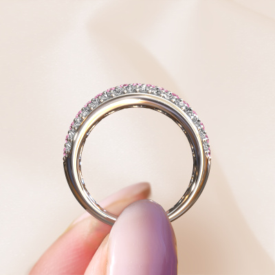 Dieser Ring mit Pavé-Fassung wird Emely 6 genannt. Dieser Ring aus 14 Karat Weißgold ist komplett rund mit Pink Saphir 1.7 mm besetzt. Das Band dieses Weißgold Ring ist mit Reihen von Pink Saphir besetzt, die weder Anfang noch Ende zu haben scheinen. Unser Goldschiede wählt die Edelsteine sorgfältig aus und setzt sie mit höchster Präzision. Für maximalen Glanz müssen die Pink Saphir perfekt ausgerichtet sein. Beim kunstvollen Fertigen und Polieren des Schmucks wird der Lichteinfall ständig überwacht, bis der Goldschmiedemeister mit dem Ergebnis zufrieden ist. Von Ihnen entworfen, speziell für Sie gefertigt!Passen Sie Ihr eigenes, geradlinige Emely 6 Ring das dann von unseren Goldschmieden mit großer Leidenschaft angefertigt wird. Bevorzugen Sie eine andere Option, als hier beim Weißgold Emely 6 Ring? Dann bieten unsere Online-Tools verschiedene Möglichkeiten. Sie können uns jederzeit gerne um Hilfe fragen, wenn Sie nicht weiterkommen. Gerne beantworten wir Ihnen alle offenen Fragen!Nach Erhalt Ihrer Bestellung beginnen unsere Goldschmiede mit Leidenschaft den kreativen Prozess und fertigen Ihren Ring in unserem eigenen Studio. Da wir keine großen Lager haben, werden diese Kosten nicht an Sie weitergegeben. Unsere Preisgestaltung ist der Beweis dafür! Wir bieten Schmuck zum niedrigsten Preis, garantiert.Um es einfacher zu machen, bieten wir eine kostenlose 30-tägige Rücksendung.