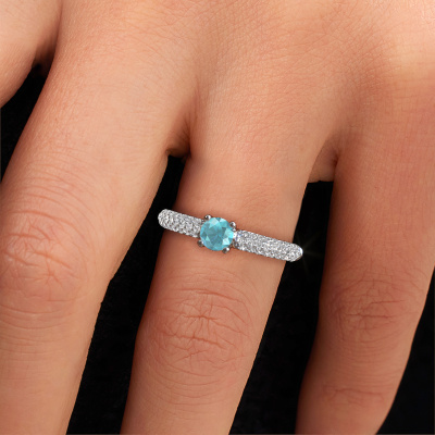 Dieser Ring mit Pavé-Fassung wird Marjan genannt. Dieser Ring aus 14 Karat Weißgold ist komplett rund mit Blaue Topas 4.2 mm besetzt. Das Band dieses Weißgold Ring ist mit Reihen von Blaue Topas besetzt, die weder Anfang noch Ende zu haben scheinen. Unser Goldschiede wählt die Edelsteine sorgfältig aus und setzt sie mit höchster Präzision. Für maximalen Glanz müssen die Blaue Topas perfekt ausgerichtet sein. Beim kunstvollen Fertigen und Polieren des Schmucks wird der Lichteinfall ständig überwacht, bis der Goldschmiedemeister mit dem Ergebnis zufrieden ist. Von Ihnen entworfen, speziell für Sie gefertigt!Unsere Goldschmiede kreieren Ihren individuellen Ring leidenschaftlich, mit größter Sorgfalt und nach Ihren Wünschen. Das Weißgold Ring, wie hier abgebildet, kann mit unserem Online-Tool individuell angepasst werden. Bitte fragen Sie unsere Schmuckdesigner um Hilfe, wenn Sie Änderungen wünsche, die in unserem Online-Tool nicht verfügbar sind. Gerne beantworten wir Ihnen alle offenen Fragen.Nach Erhalt Ihrer Bestellung beginnen unsere Goldschmiede mit Leidenschaft den kreativen Prozess und fertigen Ihren Ring in unserem eigenen Studio. Da wir keine großen Lager haben, werden diese Kosten nicht an Sie weitergegeben. Unsere Preisgestaltung ist der Beweis dafür! Wir bieten Schmuck zum niedrigsten Preis, garantiert.Um es einfacher zu machen, bieten wir eine kostenlose 30-tägige Rücksendung.