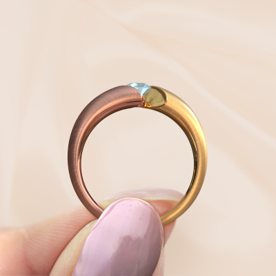 Dieser Ring namens Hojalien 1 besteht aus 14 Karat Roségold und ist mit Aquamarin besetzt. Sind Sie auf der Suche nach einem einzigartigen Roségold Ring mit moderner Note? Dann könnte dieser Ring zu Ihnen passen. Einfach nach Ihren Wünschen anpassen. Er passt zur zeitgenössischen, modernen Frau. Dieser geschmacksvolle Ring ist mit wunderschönen Aquamarins besetzt. Er wurde sorgfältig ausgewählt. Weil Ihr Ring mit nichts als dem atemberaubendsten Edelstein gekrönt werden soll. Unser erfahrener Goldschiede kreiert Ihren Ring in unserem eigenen Studio, wo der Aquamarin mit großer Sorgfalt gesetzt wird. Der Ring wird dann perfekt poliert, um einen atemberaubenden Ring zu erhalten. Mit unserer modernen Technik können wir Schmuckstücke von höchster Qualität mit größter Sorgfalt für Sie entwerfen und anpassen. Unsere Ringe sind immer um 30 Prozent günstiger als bei anderen Juwelieren. Wir fertigen Ringe auf Bestellung, also müssen wir keine großen Lager unterhalten. Wenn Sie ein bestimmtes Budget haben, beraten wir Sie gerne entsprechend.