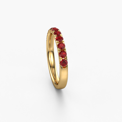 Dieser Ring wird Jackie Half genannt. Er besteht aus 14 Karat Gold und ist mit 2.4 mm Rubin besetzt. Suchen Sie nach einem einzigartigen Gold Vorsteckring mit modernem Aussehen? Dann ist das der perfekte Ring für Sie. Einfach nach Ihren Wünschen anpassen. Perfekt für eine moderne, zeitgenössische Frau! Dieser Memoire Vorsteckring ist mit atemberaubenden Rubin geschmückt. Er wurde sorgfältig ausgewählt, weil Ihr Vorsteckring nur mit den schönsten Edelsteinen gekrönt sein soll. Unser erfahrener Goldschiede kreiert Ihren Ring in unserem eigenen Studio, wo der Rubin mit großer Sorgfalt gesetzt wird. Der Ring wird dann perfekt poliert, um einen schönen Ring zu erhalten. Nach Erhalt Ihrer Bestellung beginnen unsere Goldschmiede mit Leidenschaft den kreativen Prozess und fertigen Ihren Ring in unserem eigenen Studio. Da wir keine großen Lager haben, werden diese Kosten nicht an Sie weitergegeben. Unsere Preisgestaltung ist der Beweis dafür! Wir bieten Schmuck zum niedrigsten Preis, garantiert.Unsere Online-Kollektion wird täglich um neue Schmuckdesigns ergänzt. Unser Team von leidenschaftlichen Designern ist bemüht, außergewöhnliche und vielfältige Designs zu kreieren. Haben Sie einen Ring gesehen, der Ihnen gefällt? Setzen Sie sich mit uns in Verbindung. Basierend auf einem guten Preis/Leistungsverhältnis machen wir Ihnen ein Angebot, das Sie nicht ablehnen können!Um es einfacher zu machen, bieten wir eine kostenlose 30-tägige Rücksendung.