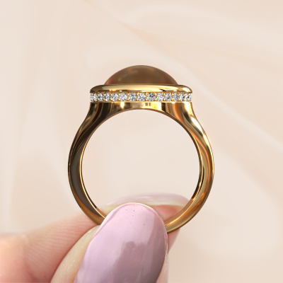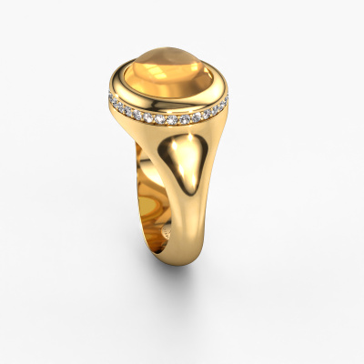 In diesem Foto ist der Gold Lesli OVL Ring mit einem 12x10 mm oval cabochon Citrin besetzt. Cabochon bedeutet, dass ein Citrin zuerst geformt, nicht facettiert wird. Nämlich in eine bestimmte Form wie einen Tropfen, ein Herz oder ein oval cabochon. Anschließend wird er poliert, bis der Edelstein eine Runde Oberfläche hat. Ein Cabochon-Edelstein ist ein atemberaubender, nobler Blickfang, der perfekt zu einem zeitgenössischen wie auch zu einem Vintage-Stil passt. Unsere erfahrenen Goldschmiede formen den modische Ring bis zur Perfektion und machen ihn einzigartig. Der Cabochon Citrin ist so gefasst, dass seine einzigartigen Qualitäten verstärkt werden. Wie gefällt Ihnen dieser moderne Gold Ring? Passen Sie diesen Lesli OVL Ring einfach mit unserem Online-Tool an. Anschließend wird Ihr persönlicher, modische Lesli OVL Ring in Handarbeit von unseren Goldschmieden angefertigt. Edelmetalle und Edelsteine können nach Ihren Wünschen angepasst werden. Haben Sie spezielle Wünsche, die in unserem Online-Tool nicht verfügbar sind? Setzen Sie sich mit uns in Verbindung. Wir passen Ihren persönlichen moderne Ring nach Ihren Wünschen an.Durch die Kombination modernster Technik mit uralter Handwerkskunst können wir alle Ringe in unserem eigenen Studio anfertigen. Jedes Schmuckstück wird auf Anfrage gefertigt. Das ist vorteilhaft, weil wir Ihnen dadurch einen Preis anbieten können, den Sie nirgendwo anders finden.Um es einfacher zu machen, bieten wir eine kostenlose 30-tägige Rücksendung.