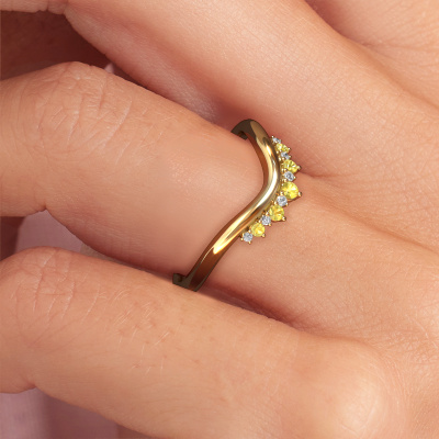Dieser Lyla A Vorsteckring in 14 Karat Gold ist mit Gelb Saphir besetzt. Dieser Gold Lyla A Ring ist die perfekte Ergänzung zu Ihrer Ring-Kollektion! Wie der Name schon sagt, ist es ein Ring, der an einem Finger mit einem anderen Ring kombiniert werden kann. Das gibt Ihnen die Möglichkeit, Ihren eigenen Stil zu schaffen. Ein Vorsteckring repräsentiert normalerweise eine bestimmte Erinnerung an jemand Besonderen, oder an einen denkwürdigen Moment. Es ist üblich, einen Vorsteckring, welcher ein Jubiläum darstellt, mit einem Trauring zu kombinieren. Aber dieser schicke Ring, kombiniert mit Ihren anderen Ringen, ist auch ein klassisches Modeobjekt. Sobald Sie Ihren Lyla A Vorsteckring mit unserem Online-Tool fertiggestellt haben, beginnen unsere Goldschmiede mit der kreativen Anfertigung Ihres Ringes. Dieser wird mit Leidenschaft und Sorgfalt nach alter Handwerkskunst gefertigt. Darüber hinaus sind unsere Edelsteine ehrlich gewonnen. Wenn Sie spezielle Änderungen an Ihrem Lyla A Vorsteckring vornehmen möchten, die in unserem Online-Tool nicht verfügbar sind, wenden Sie sich bitte an unsere Experten.Da wir unsere eigenen Ringe entwerfen und liefern, können wir Ihnen einen Ring zu einem Preis anbieten, den Sie nirgendwo anders finden. Ein Ring wird auf Bestellung angefertigt, wodurch kein überschüssiges Material anfällt. So können wir Ihnen ein gutes Angebot zum besten Preis machen. Wir verstehen, dass es sich riskant anfühlt, Ihren Ring online zu kaufen. Jedoch helfen wir Ihnen gerne beim Designprozess unter Berücksichtigung Ihres Budgets.Um es einfacher zu machen, bieten wir eine kostenlose 30-tägige Rücksendung.