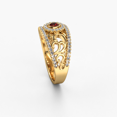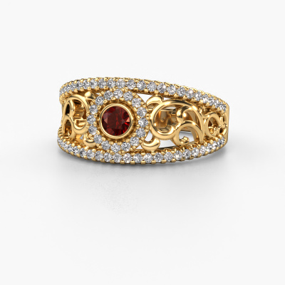 Wie würden Sie Ihren eigenen Stil beschreiben? Suchen Sie nach etwas Einzigartigem? Dieser besondere Gold Ring ist erstaunlich! Einfach nach Ihren eigenen Wünschen anpassen. Dieser Lavona Ring wird mit Granat besetzt. Diese Granat wurden sorgfältig ausgewählt, denn Ihr Ring darf nur mit dem schönsten Edelstein gekrönt werden. Sehen Sie das auch so? Unser erfahrener Goldschiede kreiert Ihren Ring in unserem eigenen Studio, wo der Granat mit Sorgfalt gesetzt wird. Der Ring wird dann perfekt poliert, um ihm extra Glanz zu verleihen. Es ist ein perfekter Ring für eine Frau mit ausgezeichnetem Geschmack!Passen Sie Ihr eigenes, besondere Lavona Ring das dann von unseren Goldschmieden mit großer Leidenschaft angefertigt wird. Bevorzugen Sie eine andere Option, als hier beim Gold Lavona Ring? Dann bieten unsere Online-Tools verschiedene Möglichkeiten. Sie können uns jederzeit gerne um Hilfe fragen, wenn Sie nicht weiterkommen. Gerne beantworten wir Ihnen alle offenen Fragen!Haben Sie ein bestimmtes Budget? Sie können uns gerne kontaktieren, damit wir Ihre Optionen besprechen können. Wir bieten unsere Ringe zum garantiert besten Preis, denn wir fertigen sie auf Bestellung. Solche Preise finden Sie nirgendwo anders!Um es einfacher zu machen, bieten wir eine kostenlose 30-tägige Rücksendung.