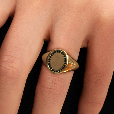 Dieser Gold Siegelring ist ein wahres Kunstwerk! Das ist unser charmant Rosy Oval 2 Siegelring und ist mit 0.009 crt rund Schwarz Diamant besetzt. In unserem Studio verwenden wir eine Kombination aus den neuesten Techniken und traditioneller