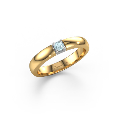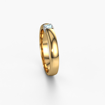 Dieser 1 Stone Ring wird Rianne 1 genannt. Diese Art von Ring wird als Memoire ring bezeichnet, da seine Edelsteine in einer durchgehenden Linie angeordnet sind. Dadurch kann er einfach mit anderen Ringen kombiniert werden. Das Band dieses 14 Karat Gold Ring ist mit einer Aquamarin besetzt. Sie können ganz einfach online die Kombination auswählen, die Sie bevorzugen. Wie Sie sehen, wird bei diesem Gold Memoire Ring ein einziger Aquamarin gesetzt. Der Memoire Ring steht für Zusammenwirken. Und genau das tun diese Edelsteine, zusammenwirken. Zusammen geben sie dem Band eines klassische Ring einen schönen Effekt! So ein bedeutungsvoller Ring, finden Sie nicht auch? Alle von uns ausgesuchten Aquamarins werden von unserem erfahrenen Goldschiede in Handarbeit eingefasst. Das ist eine präzise Aufgabe, die nur durch die Kombination von purer Handwerkskunst und dem Einsatz neuester Techniken erfolgreich durchgeführt werden kann, um eine optimale Wirkung zu erzielen. Um eine perfekte Lichtreflexion zu erzeugen, müssen alle Edelsteine auf die gleiche Weise perfekt ausgerichtet sein. Während der Fertigung wird der Goldschmiedemeister daher ständig die Lichtreflexion überwachen, um zu gewährleisten, dass die Aquamarin perfekt ausgerichtet sind. Das erfordert eine geschickte Hand und viel Geduld, aber dann wird das Endprodukt zu einem echten Kunstwerk. Und genau das ist unsere Mission!Durch die Kombination modernster Technik mit uralter Handwerkskunst können wir alle Ringe in unserem eigenen Studio anfertigen. Jedes Schmuckstück wird auf Anfrage gefertigt. Das ist vorteilhaft, weil wir Ihnen dadurch einen Preis anbieten können, den Sie nirgendwo anders finden.Unser Team von talentierten, leidenschaftlichen Designern fügt unserer Online-Kollektion täglich neue Ringe-Designs hinzu. Unser Ziel dabei ist es, Ihnen eine große Vielfalt an Schmuckstücken anbieten zu können. Bitte zögern Sie nicht, ein Angebot anzufordern, wenn Sie spezielle Wünsche für Ihren Ring haben. Wir garantieren Ihnen ein Angebot, das Sie nicht ablehnen können.Um es einfacher zu machen, bieten wir eine kostenlose 30-tägige Rücksendung.