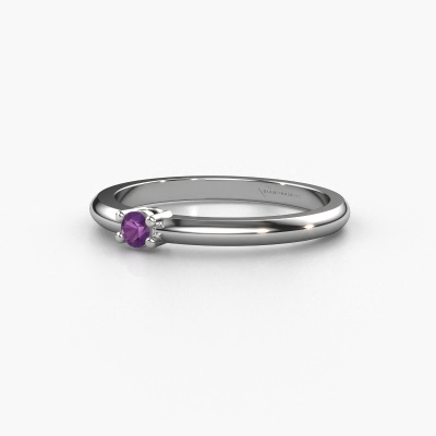 Dieser 1 Stone Ring wird Michelle 1 genannt. Diese Art von Ring wird als Memoire ring bezeichnet, da seine Edelsteine in einer durchgehenden Linie angeordnet sind. Dadurch kann er einfach mit anderen Ringen kombiniert werden. Das Band dieses 14 Karat Weißgold Ring ist mit einer Amethyst besetzt. Sie können ganz einfach online die Kombination auswählen, die Sie bevorzugen. Wie Sie sehen, wird bei diesem Weißgold Memoire Ring ein einziger Amethyst gesetzt. Der Memoire Ring steht für Zusammenwirken. Und genau das tun diese Edelsteine, zusammenwirken. Zusammen geben sie dem Band eines klassische Ring einen schönen Effekt! So ein bedeutungsvoller Ring, finden Sie nicht auch? Alle von uns ausgesuchten Amethysten werden von unserem erfahrenen Goldschiede in Handarbeit eingefasst. Das ist eine präzise Aufgabe, die nur durch die Kombination von purer Handwerkskunst und dem Einsatz neuester Techniken erfolgreich durchgeführt werden kann, um eine optimale Wirkung zu erzielen. Um eine perfekte Lichtreflexion zu erzeugen, müssen alle Edelsteine auf die gleiche Weise perfekt ausgerichtet sein. Während der Fertigung wird der Goldschmiedemeister daher ständig die Lichtreflexion überwachen, um zu gewährleisten, dass die Amethyst perfekt ausgerichtet sind. Das erfordert eine geschickte Hand und viel Geduld, aber dann wird das Endprodukt zu einem echten Kunstwerk. Und genau das ist unsere Mission!Durch die Kombination modernster Technik mit uralter Handwerkskunst können wir alle Ringe in unserem eigenen Studio anfertigen. Jedes Schmuckstück wird auf Anfrage gefertigt. Das ist vorteilhaft, weil wir Ihnen dadurch einen Preis anbieten können, den Sie nirgendwo anders finden.
