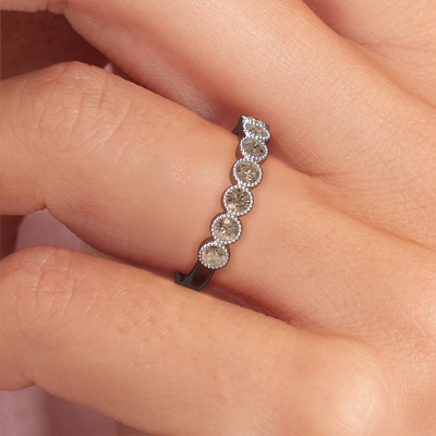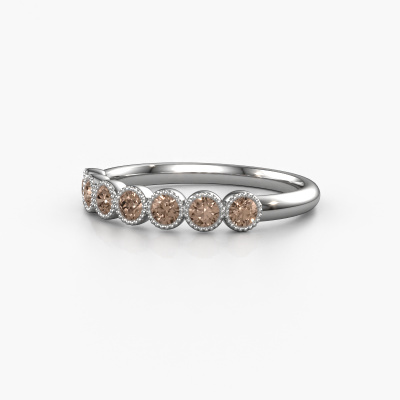 Dieser Memoire Ring wird Mariam half genannt. Diese Art von Ring wird als Memoire ring bezeichnet, da seine Edelsteine in einer durchgehenden Linie angeordnet sind. Dadurch kann er einfach mit anderen Ringen kombiniert werden. Das Band dieses Platin Ring ist mit einer Braun Diamant besetzt. Sie können ganz einfach online die Kombination auswählen, die Sie bevorzugen. Wie Sie sehen, wird bei diesem Platin Memoire Ring ein einziger Braun Diamant gesetzt. Der Memoire Ring steht für Zusammenwirken. Und genau das tun diese Edelsteine, zusammenwirken. Zusammen geben sie dem Band eines Fantasie Ring einen schönen Effekt! So ein bedeutungsvoller Ring, finden Sie nicht auch? Alle von uns ausgesuchten Braune Diamanten werden von unserem erfahrenen Goldschiede in Handarbeit eingefasst. Das ist eine präzise Aufgabe, die nur durch die Kombination von purer Handwerkskunst und dem Einsatz neuester Techniken erfolgreich durchgeführt werden kann, um eine optimale Wirkung zu erzielen. Um eine perfekte Lichtreflexion zu erzeugen, müssen alle Edelsteine auf die gleiche Weise perfekt ausgerichtet sein. Während der Fertigung wird der Goldschmiedemeister daher ständig die Lichtreflexion überwachen, um zu gewährleisten, dass die Braun Diamant perfekt ausgerichtet sind. Das erfordert eine geschickte Hand und viel Geduld, aber dann wird das Endprodukt zu einem echten Kunstwerk. Und genau das ist unsere Mission!Haben Sie ein bestimmtes Budget? Sie können uns gerne kontaktieren, damit wir Ihre Optionen besprechen können. Wir bieten unsere Ringe zum garantiert besten Preis, denn wir fertigen sie auf Bestellung. Solche Preise finden Sie nirgendwo anders!
