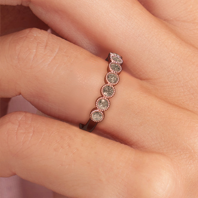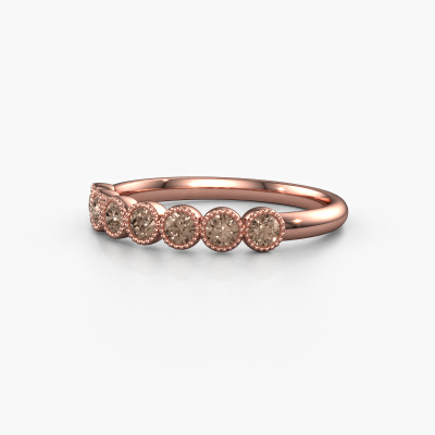 Dieser Memoire Ring wird Mariam half genannt. Diese Art von Ring wird als Memoire ring bezeichnet, da seine Edelsteine in einer durchgehenden Linie angeordnet sind. Dadurch kann er einfach mit anderen Ringen kombiniert werden. Das Band dieses 14 Karat Roségold Ring ist mit einer Braun Diamant besetzt. Sie können ganz einfach online die Kombination auswählen, die Sie bevorzugen. Wie Sie sehen, wird bei diesem Roségold Memoire Ring ein einziger Braun Diamant gesetzt. Der Memoire Ring steht für Zusammenwirken. Und genau das tun diese Edelsteine, zusammenwirken. Zusammen geben sie dem Band eines Fantasie Ring einen schönen Effekt! So ein bedeutungsvoller Ring, finden Sie nicht auch? Alle von uns ausgesuchten Braune Diamanten werden von unserem erfahrenen Goldschiede in Handarbeit eingefasst. Das ist eine präzise Aufgabe, die nur durch die Kombination von purer Handwerkskunst und dem Einsatz neuester Techniken erfolgreich durchgeführt werden kann, um eine optimale Wirkung zu erzielen. Um eine perfekte Lichtreflexion zu erzeugen, müssen alle Edelsteine auf die gleiche Weise perfekt ausgerichtet sein. Während der Fertigung wird der Goldschmiedemeister daher ständig die Lichtreflexion überwachen, um zu gewährleisten, dass die Braun Diamant perfekt ausgerichtet sind. Das erfordert eine geschickte Hand und viel Geduld, aber dann wird das Endprodukt zu einem echten Kunstwerk. Und genau das ist unsere Mission!Haben Sie ein bestimmtes Budget? Sie können uns gerne kontaktieren, damit wir Ihre Optionen besprechen können. Wir bieten unsere Ringe zum garantiert besten Preis, denn wir fertigen sie auf Bestellung. Solche Preise finden Sie nirgendwo anders!