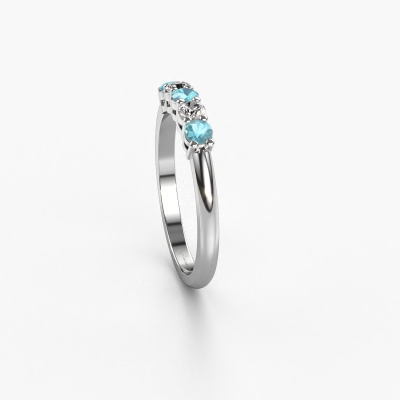 Dieser 5 Stone Ring wird Michelle 5 genannt. Diese Art von Ring wird als Memoire ring bezeichnet, da seine Edelsteine in einer durchgehenden Linie angeordnet sind. Dadurch kann er einfach mit anderen Ringen kombiniert werden. Das Band dieses Platin Ring ist in einer Kombination aus Blau Topas und Lab-grown Diamant besetzt. Sie können ganz einfach online die Kombination auswählen, die Sie bevorzugen. Wie Sie sehen, wird bei diesem Platin Memoire Ring mehre Blaue Topas gesetzt. Der Memoire ring steht für Zusammenwirken. Und genau das tun diese Edelsteine, zusammenwirken. Zusammen geben sie dem Band eines klassische Ring einen schönen Effekt! So ein bedeutungsvoller Ring, finden Sie nicht auch? Alle von uns ausgesuchten Blaue Topas werden von unserem erfahrenen Goldschiede in Handarbeit eingefasst. Das ist eine präzise Aufgabe, die nur durch die Kombination von purer Handwerkskunst und dem Einsatz neuester Techniken erfolgreich durchgeführt werden kann, um eine optimale Wirkung zu erzielen. Um eine perfekte Lichtreflexion zu erzeugen, müssen alle Edelsteine auf die gleiche Weise perfekt ausgerichtet sein. Während der Fertigung wird der Goldschmied Meister daher ständig die Lichtreflexion überwachen, um zu gewährleisten, dass die Blaue Topas perfekt ausgerichtet sind. Das erfordert eine geschickte Hand und viel Geduld, aber dann wird das Endprodukt zu einem echten Kunstwerk. Und genau das ist unsere Mission!Haben Sie ein bestimmtes Budget? Sie können uns gerne kontaktieren, damit wir Ihre Optionen besprechen können. Wir bieten unsere Ringe zum garantiert besten Preis, denn wir fertigen sie auf Bestellung. Solche Preise finden Sie nirgendwo anders!