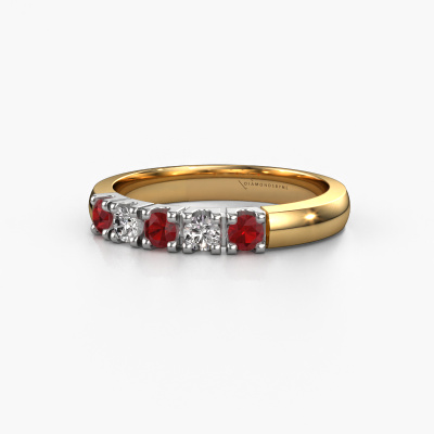 Dieser Memoire Ring wird Rianne 5 genannt. Diese Art von Ring wird als Memoire ring bezeichnet, da seine Edelsteine in einer durchgehenden Linie angeordnet sind. Dadurch kann er einfach mit anderen Ringen kombiniert werden. Das Band dieses 14 Karat Gold Ring ist in einer Kombination aus Rubin und Diamant besetzt. Sie können ganz einfach online die Kombination auswählen, die Sie bevorzugen. Wie Sie sehen, wird bei diesem Gold Memoire Ring mehre Rubin gesetzt. Der Memoire ring steht für Zusammenwirken. Und genau das tun diese Edelsteine, zusammenwirken. Zusammen geben sie dem Band eines klassische Ring einen schönen Effekt! So ein bedeutungsvoller Ring, finden Sie nicht auch? Alle von uns ausgesuchten Rubin werden von unserem erfahrenen Goldschiede in Handarbeit eingefasst. Das ist eine präzise Aufgabe, die nur durch die Kombination von purer Handwerkskunst und dem Einsatz neuester Techniken erfolgreich durchgeführt werden kann, um eine optimale Wirkung zu erzielen. Um eine perfekte Lichtreflexion zu erzeugen, müssen alle Edelsteine auf die gleiche Weise perfekt ausgerichtet sein. Während der Fertigung wird der Goldschmied Meister daher ständig die Lichtreflexion überwachen, um zu gewährleisten, dass die Rubin perfekt ausgerichtet sind. Das erfordert eine geschickte Hand und viel Geduld, aber dann wird das Endprodukt zu einem echten Kunstwerk. Und genau das ist unsere Mission!Durch die Kombination modernster Technik mit uralter Handwerkskunst können wir alle Ringe in unserem eigenen Studio anfertigen. Jedes Schmuckstück wird auf Anfrage gefertigt. Das ist vorteilhaft, weil wir Ihnen dadurch einen Preis anbieten können, den Sie nirgendwo anders finden.