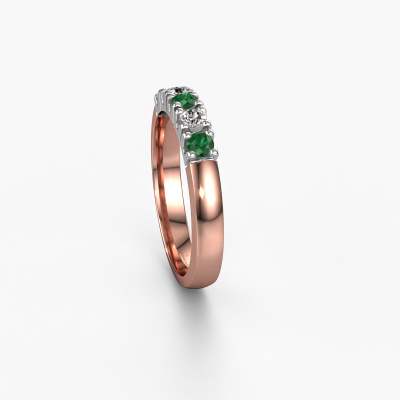 Dieser Memoire Ring wird Rianne 5 genannt. Diese Art von Ring wird als Memoire ring bezeichnet, da seine Edelsteine in einer durchgehenden Linie angeordnet sind. Dadurch kann er einfach mit anderen Ringen kombiniert werden. Das Band dieses 14 Karat Roségold Ring ist in einer Kombination aus Smaragd und Diamant besetzt. Sie können ganz einfach online die Kombination auswählen, die Sie bevorzugen. Wie Sie sehen, wird bei diesem Roségold Memoire Ring mehre Smaragd gesetzt. Der Memoire ring steht für Zusammenwirken. Und genau das tun diese Edelsteine, zusammenwirken. Zusammen geben sie dem Band eines klassische Ring einen schönen Effekt! So ein bedeutungsvoller Ring, finden Sie nicht auch? Alle von uns ausgesuchten Smaragd werden von unserem erfahrenen Goldschiede in Handarbeit eingefasst. Das ist eine präzise Aufgabe, die nur durch die Kombination von purer Handwerkskunst und dem Einsatz neuester Techniken erfolgreich durchgeführt werden kann, um eine optimale Wirkung zu erzielen. Um eine perfekte Lichtreflexion zu erzeugen, müssen alle Edelsteine auf die gleiche Weise perfekt ausgerichtet sein. Während der Fertigung wird der Goldschmied Meister daher ständig die Lichtreflexion überwachen, um zu gewährleisten, dass die Smaragd perfekt ausgerichtet sind. Das erfordert eine geschickte Hand und viel Geduld, aber dann wird das Endprodukt zu einem echten Kunstwerk. Und genau das ist unsere Mission!Durch die Kombination modernster Technik mit uralter Handwerkskunst können wir alle Ringe in unserem eigenen Studio anfertigen. Jedes Schmuckstück wird auf Anfrage gefertigt. Das ist vorteilhaft, weil wir Ihnen dadurch einen Preis anbieten können, den Sie nirgendwo anders finden.