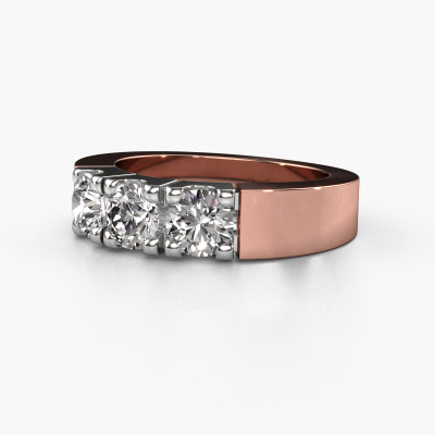 Dieser 3 Stone Ring wird Dana 3 genannt. Diese Art von Ring wird als Memoire ring bezeichnet, da seine Edelsteine in einer durchgehenden Linie angeordnet sind. Dadurch kann er einfach mit anderen Ringen kombiniert werden. Das Band dieses 14 Karat Roségold Ring ist in einer Kombination aus Diamant und Lab-grown Diamant besetzt. Sie können ganz einfach online die Kombination auswählen, die Sie bevorzugen. Wie Sie sehen, wird bei diesem Roségold Memoire Ring mehre Diamanten gesetzt. Der Memoire ring steht für Zusammenwirken. Und genau das tun diese Edelsteine, zusammenwirken. Zusammen geben sie dem Band eines moderne Ring einen schönen Effekt! So ein bedeutungsvoller Ring, finden Sie nicht auch? Alle von uns ausgesuchten Diamanten werden von unserem erfahrenen Goldschiede in Handarbeit eingefasst. Das ist eine präzise Aufgabe, die nur durch die Kombination von purer Handwerkskunst und dem Einsatz neuester Techniken erfolgreich durchgeführt werden kann, um eine optimale Wirkung zu erzielen. Um eine perfekte Lichtreflexion zu erzeugen, müssen alle Edelsteine auf die gleiche Weise perfekt ausgerichtet sein. Während der Fertigung wird der Goldschmied Meister daher ständig die Lichtreflexion überwachen, um zu gewährleisten, dass die Diamanten perfekt ausgerichtet sind. Das erfordert eine geschickte Hand und viel Geduld, aber dann wird das Endprodukt zu einem echten Kunstwerk. Und genau das ist unsere Mission!Nach Erhalt Ihrer Bestellung beginnen unsere Goldschmiede mit Leidenschaft den kreativen Prozess und fertigen Ihren Ring in unserem eigenen Studio. Da wir keine großen Lager haben, werden diese Kosten nicht an Sie weitergegeben. Unsere Preisgestaltung ist der Beweis dafür! Wir bieten Schmuck zum niedrigsten Preis, garantiert.Unsere talentierten, leidenschaftlichen Designer fügen unserer Online-Kollektion täglich neue Designs hinzu. Zusammen versuchen sie, eine vielfältige Kollektion feinster Schmuckstücke zu erstellen. Wenn Sie es vorziehen, einen Ring nach Ihrem eigenen Entwurf zu machen, können Sie gerne ein Angebot anfordern. Wir machen Ihnen ein großartiges Angebot, basierend auf Qualität und Preis.Um es einfacher zu machen, bieten wir eine kostenlose 30-tägige Rücksendung.
