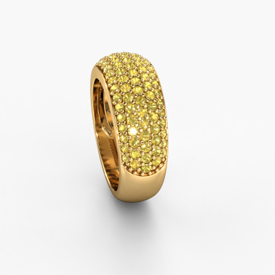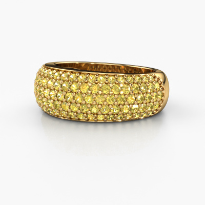 Dieser Ring mit Pavé-Fassung wird Cristy genannt. Dieser Ring aus 14 Karat Gold ist komplett rund mit Gelb Saphir 1.2 mm besetzt. Das Band dieses Gold Ring ist mit Reihen von Gelb Saphir besetzt, die weder Anfang noch Ende zu haben scheinen. Unser Goldschiede wählt die Edelsteine sorgfältig aus und setzt sie mit höchster Präzision. Für maximalen Glanz müssen die Gelb Saphir perfekt ausgerichtet sein. Beim kunstvollen Fertigen und Polieren des Schmucks wird der Lichteinfall ständig überwacht, bis der Goldschmiedemeister mit dem Ergebnis zufrieden ist. Von Ihnen entworfen, speziell für Sie gefertigt!Sobald Sie Ihren Cristy Ring mit unserem Online-Tool fertiggestellt haben, beginnen unsere Goldschmiede mit der kreativen Anfertigung Ihres Ringes. Dieser wird mit Leidenschaft und Sorgfalt nach alter Handwerkskunst gefertigt. Darüber hinaus sind unsere Edelsteine ehrlich gewonnen. Wenn Sie spezielle Änderungen an Ihrem Cristy Ring vornehmen möchten, die in unserem Online-Tool nicht verfügbar sind, wenden Sie sich bitte an unsere Experten.Da wir unsere eigenen Ringe entwerfen und liefern, können wir Ihnen einen Ring zu einem Preis anbieten, den Sie nirgendwo anders finden. Ein Ring wird auf Bestellung angefertigt, wodurch kein überschüssiges Material anfällt. So können wir Ihnen ein gutes Angebot zum besten Preis machen. Wir verstehen, dass es sich riskant anfühlt, Ihren Ring online zu kaufen. Jedoch helfen wir Ihnen gerne beim Designprozess unter Berücksichtigung Ihres Budgets.Um es einfacher zu machen, bieten wir eine kostenlose 30-tägige Rücksendung.