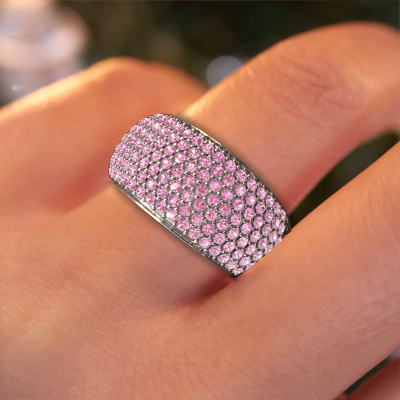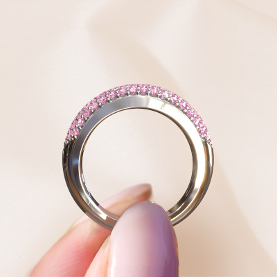 Dieser Ring mit Pavé-Fassung wird Kati genannt. Dieser Ring aus 14 Karat Weißgold ist komplett rund mit Pink Saphir 1.3 mm besetzt. Das Band dieses Weißgold Ring ist mit Reihen von Pink Saphir besetzt, die weder Anfang noch Ende zu haben scheinen. Unser Goldschiede wählt die Edelsteine sorgfältig aus und setzt sie mit höchster Präzision. Für maximalen Glanz müssen die Pink Saphir perfekt ausgerichtet sein. Beim kunstvollen Fertigen und Polieren des Schmucks wird der Lichteinfall ständig überwacht, bis der Goldschmiedemeister mit dem Ergebnis zufrieden ist. Von Ihnen entworfen, speziell für Sie gefertigt!Sobald Sie Ihren Kati Ring mit unserem Online-Tool fertiggestellt haben, beginnen unsere Goldschmiede mit der kreativen Anfertigung Ihres Ringes. Dieser wird mit Leidenschaft und Sorgfalt nach alter Handwerkskunst gefertigt. Darüber arbeiten wir mit ehrlichen Edelsteinen. Einfach online mit unserem Online-Tool anpassen, wenn Sie Änderungen wünschen. Wenn Sie spezielle Änderungen an Ihrem Kati Weißgold Ring vornehmen möchten, die in unserem Online-Tool nicht verfügbar sind, wenden Sie sich bitte an unsere Experten.Nach Erhalt Ihrer Bestellung beginnen unsere Goldschmiede mit Leidenschaft den kreativen Prozess und fertigen Ihren Ring in unserem eigenen Studio. Da wir keine großen Lager haben, werden diese Kosten nicht an Sie weitergegeben. Unsere Preisgestaltung ist der Beweis dafür! Wir bieten Schmuck zum niedrigsten Preis, garantiert.Um es einfacher zu machen, bieten wir eine kostenlose 30-tägige Rücksendung.