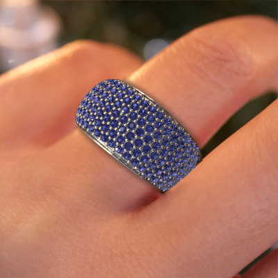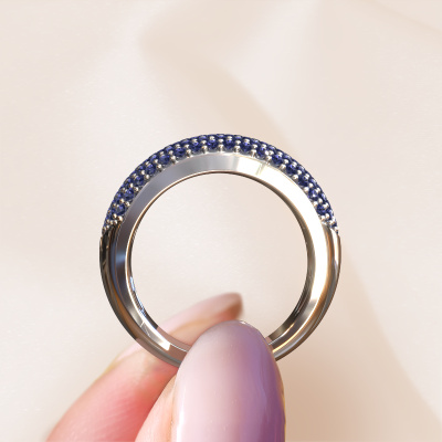 Dieser Ring mit Pavé-Fassung wird Kati genannt. Dieser Ring aus 14 Karat Weißgold ist komplett rund mit Saphir 1.3 mm besetzt. Das Band dieses Weißgold Ring ist mit Reihen von Saphir besetzt, die weder Anfang noch Ende zu haben scheinen. Unser Goldschiede wählt die Edelsteine sorgfältig aus und setzt sie mit höchster Präzision. Für maximalen Glanz müssen die Saphir perfekt ausgerichtet sein. Beim kunstvollen Fertigen und Polieren des Schmucks wird der Lichteinfall ständig überwacht, bis der Goldschmiedemeister mit dem Ergebnis zufrieden ist. Von Ihnen entworfen, speziell für Sie gefertigt!Sobald Sie Ihren Kati Ring mit unserem Online-Tool fertiggestellt haben, beginnen unsere Goldschmiede mit der kreativen Anfertigung Ihres Ringes. Dieser wird mit Leidenschaft und Sorgfalt nach alter Handwerkskunst gefertigt. Darüber arbeiten wir mit ehrlichen Edelsteinen. Einfach online mit unserem Online-Tool anpassen, wenn Sie Änderungen wünschen. Wenn Sie spezielle Änderungen an Ihrem Kati Weißgold Ring vornehmen möchten, die in unserem Online-Tool nicht verfügbar sind, wenden Sie sich bitte an unsere Experten.Nach Erhalt Ihrer Bestellung beginnen unsere Goldschmiede mit Leidenschaft den kreativen Prozess und fertigen Ihren Ring in unserem eigenen Studio. Da wir keine großen Lager haben, werden diese Kosten nicht an Sie weitergegeben. Unsere Preisgestaltung ist der Beweis dafür! Wir bieten Schmuck zum niedrigsten Preis, garantiert.Um es einfacher zu machen, bieten wir eine kostenlose 30-tägige Rücksendung.