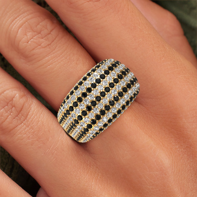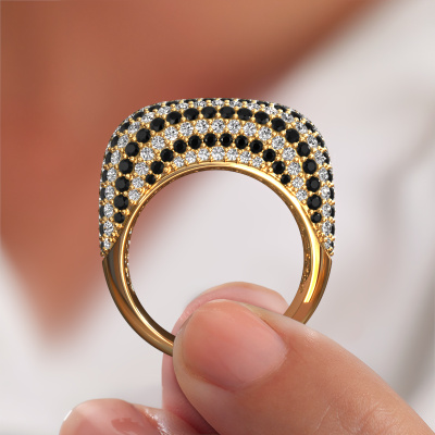 Das ist ein atemberaubender, Pavé Fassung Gold Kira Ring. Er ist mit Schwarz Diamant besetzt. Ein Designer-Ring, passend für noble Frauen. Der Ring wurde von unseren eigenen Goldschmieden entworfen. In unserem Atelier verwenden wir eine Kombination aus den neuesten Techniken und traditioneller Handwerkskunst, sodass wir einen perfekt gestalteten Ring kreieren können. Unsere erfahrenen Goldschmiede streben nach Perfektion und werden nicht aufhören, bis ein perfekter Ring geschaffen ist, ein wahres Kunstwerk. Ein einzigartiger Ring, der zu Ihrem eigenen Stil passt. Ein individueller, exklusive Pavé Fassung Ring ist das perfekte Geschenk! Unser Team von leidenschaftlichen Goldschmieden fügt täglich neue exquisite Designs hinzu. Und jedes Design kann angepasst werden. Passen Sie zum Beispiel einfach die Edelmetalle und die Farbe der verwendeten Edelsteine an. Das macht Ihr Design des exklusive kira Ring wirklich einzigartig!Durch die Kombination modernster Technik mit uralter Handwerkskunst können wir alle Ringe in unserem eigenen Studio anfertigen. Jedes Schmuckstück wird auf Anfrage gefertigt. Das ist vorteilhaft, weil wir Ihnen dadurch einen Preis anbieten können, den Sie nirgendwo anders finden.Um es einfacher zu machen, bieten wir eine kostenlose 30-tägige Rücksendung.
