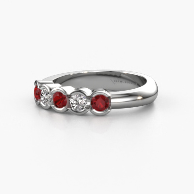 Dieser Ring wird Lotte 5 genannt. Er besteht aus Platin und ist mit 3 mm Rubin besetzt. Suchen Sie nach einem einzigartigen Platin Ring mit modernem Aussehen? Dann ist das der perfekte Ring für Sie. Einfach nach Ihren Wünschen anpassen. Perfekt für eine moderne, zeitgenössische Frau! Dieser 5 Stone Ring ist mit atemberaubenden Rubin geschmückt. Er wurde sorgfältig ausgewählt, weil Ihr Ring nur mit den schönsten Edelsteinen gekrönt sein soll. Unser erfahrener Goldschiede kreiert Ihren Ring in unserem eigenen Studio, wo der Rubin mit großer Sorgfalt gesetzt wird. Der Ring wird dann perfekt poliert, um einen schönen Ring zu erhalten. Durch die Kombination modernster Technik mit uralter Handwerkskunst können wir alle Ringe in unserem eigenen Studio anfertigen. Jedes Schmuckstück wird auf Anfrage gefertigt. Das ist vorteilhaft, weil wir Ihnen dadurch einen Preis anbieten können, den Sie nirgendwo anders finden.Unser Team von talentierten, leidenschaftlichen Designern fügt unserer Online-Kollektion täglich neue Ring-Designs hinzu. Unser Ziel dabei ist es, Ihnen eine große Vielfalt an Schmuckstücken anbieten zu können. Bitte zögern Sie nicht, ein Angebot anzufordern, wenn Sie spezielle Wünsche für Ihren Ring haben. Wir garantieren Ihnen ein Angebot, das Sie nicht ablehnen können.Um es einfacher zu machen, bieten wir eine kostenlose 30-tägige Rücksendung.