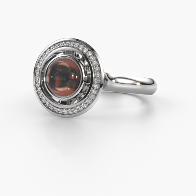 In diesem Foto ist der Platin Salima Ring mit einem 6 mm rund cabochon Rauchquarz besetzt. Cabochon bedeutet, dass ein Rauchquarz zuerst geformt, nicht facettiert wird. Nämlich in eine bestimmte Form wie einen Tropfen, ein Herz oder ein rund cabochon. Anschließend wird er poliert, bis der Edelstein eine Runde Oberfläche hat. Ein Cabochon-Edelstein ist ein atemberaubender, nobler Blickfang, der perfekt zu einem zeitgenössischen wie auch zu einem Vintage-Stil passt. Unsere erfahrenen Goldschmiede formen den besondere Ring bis zur Perfektion und machen ihn einzigartig. Der Cabochon Rauchquarz ist so gefasst, dass seine einzigartigen Qualitäten verstärkt werden. Wie gefällt Ihnen dieser design Platin Ring? Passen Sie diesen Salima Ring einfach mit unserem Online-Tool an. Anschließend wird Ihr persönlicher, besondere Salima Ring in Handarbeit von unseren Goldschmieden angefertigt. Edelmetalle und Edelsteine können nach Ihren Wünschen angepasst werden. Haben Sie spezielle Wünsche, die in unserem Online-Tool nicht verfügbar sind? Setzen Sie sich mit uns in Verbindung. Wir passen Ihren persönlichen design Ring nach Ihren Wünschen an.Nach Erhalt Ihrer Bestellung beginnen unsere Goldschmiede mit Leidenschaft den kreativen Prozess und fertigen Ihren Ring in unserem eigenen Studio. Da wir keine großen Lager haben, werden diese Kosten nicht an Sie weitergegeben. Unsere Preisgestaltung ist der Beweis dafür! Wir bieten Schmuck zum niedrigsten Preis, garantiert.Um es einfacher zu machen, bieten wir eine kostenlose 30-tägige Rücksendung.