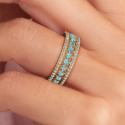 Dieser exklusive Gold Elizbeth 1 Ring ist ein wahres Kunstwerk! Dieser Ring besteht aus 14 Karat Gold und ist mit 2 mm rund Blaue Topas besetzt. Die kleinsten Ornamente werden mit viel Geduld und großer Leidenschaft von unserem Goldschiede gefertigt. Um diesen Ring mit großer Präzision zu schaffen, erfordert dieses Handwerk ein scharfes Auge und eine geschickte Hand. Eine Herausforderung, die bei unseren erfahrenen Goldschmieden eine Leidenschaft entfacht. Die exquisiten Blaue Topas sind so gesetzt, dass ihre einzigartigen Qualitäten verstärkt werden. Dies verleiht dem Ring eine noch glamouröse Erscheinung. Der Ring ist für sich einzigartig, wegen der natürlichen Edelsteine, die wir speziell für diesen Elizbeth 1 Ring ausgewählt haben. Und indem Sie das Edelmetall selbst auswählen, kreieren Sie einen einzigartigen Ring. Sobald Sie Ihren Elizbeth 1 Ring mit unserem Online-Tool fertiggestellt haben, beginnen unsere Goldschmiede mit der kreativen Anfertigung Ihres Ringes. Dieser wird mit Leidenschaft und Sorgfalt nach alter Handwerkskunst gefertigt. Darüber arbeiten wir mit ehrlichen Edelsteinen. Einfach online mit unserem Online-Tool anpassen, wenn Sie Änderungen wünschen. Wenn Sie spezielle Änderungen an Ihrem Elizbeth 1 Gold Ring vornehmen möchten, die in unserem Online-Tool nicht verfügbar sind, wenden Sie sich bitte an unsere Experten.Durch die Kombination modernster Technik mit uralter Handwerkskunst können wir alle Ringe in unserem eigenen Studio anfertigen. Jedes Schmuckstück wird auf Anfrage gefertigt. Das ist vorteilhaft, weil wir Ihnen dadurch einen Preis anbieten können, den Sie nirgendwo anders finden.Um es einfacher zu machen, bieten wir eine kostenlose 30-tägige Rücksendung.