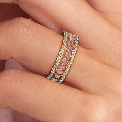 Dieser exklusive Gold Elizbeth 1 Ring ist ein wahres Kunstwerk! Dieser Ring besteht aus 14 Karat Gold und ist mit 2 mm rund Turmalin rosa besetzt. Die kleinsten Ornamente werden mit viel Geduld und großer Leidenschaft von unserem Goldschiede gefertigt. Um diesen Ring mit großer Präzision zu schaffen, erfordert dieses Handwerk ein scharfes Auge und eine geschickte Hand. Eine Herausforderung, die bei unseren erfahrenen Goldschmieden eine Leidenschaft entfacht. Die exquisiten Turmalin rosa sind so gesetzt, dass ihre einzigartigen Qualitäten verstärkt werden. Dies verleiht dem Ring eine noch glamouröse Erscheinung. Der Ring ist für sich einzigartig, wegen der natürlichen Edelsteine, die wir speziell für diesen Elizbeth 1 Ring ausgewählt haben. Und indem Sie das Edelmetall selbst auswählen, kreieren Sie einen einzigartigen Ring. Sobald Sie Ihren Elizbeth 1 Ring mit unserem Online-Tool fertiggestellt haben, beginnen unsere Goldschmiede mit der kreativen Anfertigung Ihres Ringes. Dieser wird mit Leidenschaft und Sorgfalt nach alter Handwerkskunst gefertigt. Darüber arbeiten wir mit ehrlichen Edelsteinen. Einfach online mit unserem Online-Tool anpassen, wenn Sie Änderungen wünschen. Wenn Sie spezielle Änderungen an Ihrem Elizbeth 1 Gold Ring vornehmen möchten, die in unserem Online-Tool nicht verfügbar sind, wenden Sie sich bitte an unsere Experten.Durch die Kombination modernster Technik mit uralter Handwerkskunst können wir alle Ringe in unserem eigenen Studio anfertigen. Jedes Schmuckstück wird auf Anfrage gefertigt. Das ist vorteilhaft, weil wir Ihnen dadurch einen Preis anbieten können, den Sie nirgendwo anders finden.Um es einfacher zu machen, bieten wir eine kostenlose 30-tägige Rücksendung.