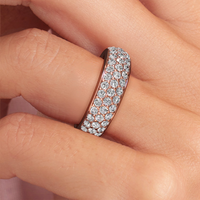 Dieser Ring mit Pavé-Fassung wird Emely 8 genannt. Dieser Ring aus 14 Karat Roségold ist komplett rund mit Zirkonia 1.9 mm besetzt. Das Band dieses Roségold Ring ist mit Reihen von Zirkonia besetzt, die weder Anfang noch Ende zu haben scheinen. Unser Goldschiede wählt die Edelsteine sorgfältig aus und setzt sie mit höchster Präzision. Für maximalen Glanz müssen die Zirkonia perfekt ausgerichtet sein. Beim kunstvollen Fertigen und Polieren des Schmucks wird der Lichteinfall ständig überwacht, bis der Goldschmiedemeister mit dem Ergebnis zufrieden ist. Von Ihnen entworfen, speziell für Sie gefertigt!Der reiche Emely 8 Ring, wie hier abgebildet, kann ganz nach Ihren Wünschen gestaltet werden. Unser Online-Tool bietet viele verschiedene Möglichkeiten. Bitte kontaktieren Sie uns, wenn Sie Änderungen an Ihrem Emely 8 Ring wünschen, die in unserem Online-Tool nicht verfügbar sind.Nach Erhalt Ihrer Bestellung beginnen unsere Goldschmiede mit Leidenschaft den kreativen Prozess und fertigen Ihren Ring in unserem eigenen Studio. Da wir keine großen Lager haben, werden diese Kosten nicht an Sie weitergegeben. Unsere Preisgestaltung ist der Beweis dafür! Wir bieten Schmuck zum niedrigsten Preis, garantiert.Um es einfacher zu machen, bieten wir eine kostenlose 30-tägige Rücksendung.