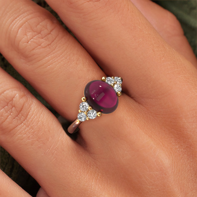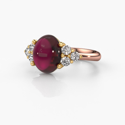 In diesem Foto ist der Roségold Clarice Ring mit einem 10x8 mm oval cabochon Granat besetzt. Cabochon bedeutet, dass ein Granat zuerst geformt, nicht facettiert wird. Nämlich in eine bestimmte Form wie einen Tropfen, ein Herz oder ein oval cabochon. Anschließend wird er poliert, bis der Edelstein eine Runde Oberfläche hat. Ein Cabochon-Edelstein ist ein atemberaubender, nobler Blickfang, der perfekt zu einem zeitgenössischen wie auch zu einem Vintage-Stil passt. Unsere erfahrenen Goldschmiede formen den charmant Ring bis zur Perfektion und machen ihn einzigartig. Der Cabochon Granat ist so gefasst, dass seine einzigartigen Qualitäten verstärkt werden. Passen Sie Ihr eigenes, charmant Clarice Ring das dann von unseren Goldschmieden mit großer Leidenschaft angefertigt wird. Bevorzugen Sie eine andere Option, als hier beim Roségold Clarice Ring? Dann bieten unsere Online-Tools verschiedene Möglichkeiten. Sie können uns jederzeit gerne um Hilfe fragen, wenn Sie nicht weiterkommen. Gerne beantworten wir Ihnen alle offenen Fragen!Durch die Kombination modernster Technik mit uralter Handwerkskunst können wir alle Ringe in unserem eigenen Studio anfertigen. Jedes Schmuckstück wird auf Anfrage gefertigt. Das ist vorteilhaft, weil wir Ihnen dadurch einen Preis anbieten können, den Sie nirgendwo anders finden.Um es einfacher zu machen, bieten wir eine kostenlose 30-tägige Rücksendung.