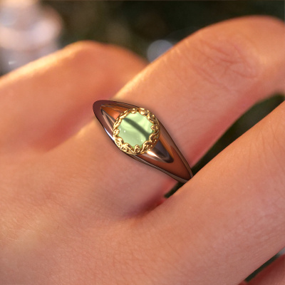 In diesem Foto ist der Roségold Birgit Ring mit einem 6 mm rund cabochon Peridot besetzt. Cabochon bedeutet, dass ein Peridot zuerst geformt, nicht facettiert wird. Nämlich in eine bestimmte Form wie einen Tropfen, ein Herz oder ein rund cabochon. Anschließend wird er poliert, bis der Edelstein eine Runde Oberfläche hat. Ein Cabochon-Edelstein ist ein atemberaubender, nobler Blickfang, der perfekt zu einem zeitgenössischen wie auch zu einem Vintage-Stil passt. Unsere erfahrenen Goldschmiede formen den reiche Ring bis zur Perfektion und machen ihn einzigartig. Der Cabochon Peridot ist so gefasst, dass seine einzigartigen Qualitäten verstärkt werden. Der reiche Birgit Ring, wie hier abgebildet, kann ganz nach Ihren Wünschen gestaltet werden. Unser Online-Tool bietet viele verschiedene Möglichkeiten. Bitte kontaktieren Sie uns, wenn Sie Änderungen an Ihrem Birgit Ring wünschen, die in unserem Online-Tool nicht verfügbar sind.Da wir unsere eigenen Ringe entwerfen und liefern, können wir Ihnen einen Ring zu einem Preis anbieten, den Sie nirgendwo anders finden. Ein Ring wird auf Bestellung angefertigt, wodurch kein überschüssiges Material anfällt. So können wir Ihnen ein gutes Angebot zum besten Preis machen. Wir verstehen, dass es sich riskant anfühlt, Ihren Ring online zu kaufen. Jedoch helfen wir Ihnen gerne beim Designprozess unter Berücksichtigung Ihres Budgets.Um es einfacher zu machen, bieten wir eine kostenlose 30-tägige Rücksendung.