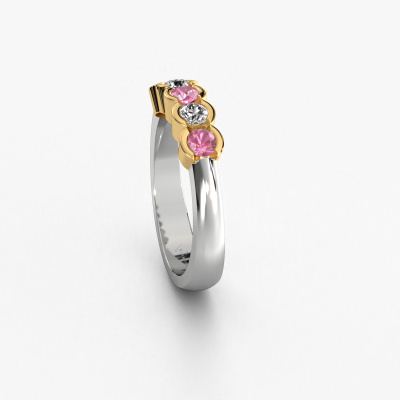 Dieser Ring wird Lotte 5 genannt. Er besteht aus 14 Karat Weißgold und ist mit 3 mm Pink Saphir besetzt. Suchen Sie nach einem einzigartigen Weißgold Ring mit modernem Aussehen? Dann ist das der perfekte Ring für Sie. Einfach nach Ihren Wünschen anpassen. Perfekt für eine moderne, zeitgenössische Frau! Dieser 5 Stone Ring ist mit atemberaubenden Pink Saphir geschmückt. Er wurde sorgfältig ausgewählt, weil Ihr Ring nur mit den schönsten Edelsteinen gekrönt sein soll. Unser erfahrener Goldschiede kreiert Ihren Ring in unserem eigenen Studio, wo der Pink Saphir mit großer Sorgfalt gesetzt wird. Der Ring wird dann perfekt poliert, um einen schönen Ring zu erhalten. Durch die Kombination modernster Technik mit uralter Handwerkskunst können wir alle Ringe in unserem eigenen Studio anfertigen. Jedes Schmuckstück wird auf Anfrage gefertigt. Das ist vorteilhaft, weil wir Ihnen dadurch einen Preis anbieten können, den Sie nirgendwo anders finden.Unser Team von talentierten, leidenschaftlichen Designern fügt unserer Online-Kollektion täglich neue Ring-Designs hinzu. Unser Ziel dabei ist es, Ihnen eine große Vielfalt an Schmuckstücken anbieten zu können. Bitte zögern Sie nicht, ein Angebot anzufordern, wenn Sie spezielle Wünsche für Ihren Ring haben. Wir garantieren Ihnen ein Angebot, das Sie nicht ablehnen können.Um es einfacher zu machen, bieten wir eine kostenlose 30-tägige Rücksendung.