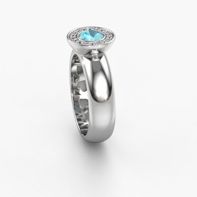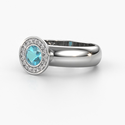 Der oben gezeigte Ring wird Anna genannt. Diese Art von Ring wird als Halo Ring bezeichnet. Der 14 Karat Weißgold Ring ist mit einem 5 mm rund Blau Topas als Mittelstein besetzt, umgeben von kleineren Diamanten. Dieser Halo Weißgold Halo Ring ist mit einem großen Blau Topas besetzt, umschlossen von kleineren Edelsteinen. Der Ring erhielt seinen Namen wegen seinem Lichthof, den die kleineren Diamanten helfen zu schaffen. Um einen umwerfenden Lichthof zu erhalten, müssen diese kleineren Edelsteine perfekt ausgerichtet sein, damit das Licht aus jedem Blickwinkel gleichmäßig auf den Blau Topas reflektiert wird. Und unsere erfahrenen Goldschmiede erledigen diese Arbeit. Jedes sorgfältig ausgewählte Blau Topas wird von Hand und mit höchster Präzision gesetzt. Während der Herstellung wird der Lichteinfall ständig überwacht, um sicherzustellen, dass der Halo Halo-Effekt noch sichtbar ist. Am Ende erhalten Sie einen einzigartigen Ring mit einem strahlenden Blaue Topas Edelstein-Herzstück. Ein wahrlich exquisiter Ring!Der Halo Anna Ring, wie hier abgebildet, kann ganz nach Ihren Wünschen gestaltet werden. Unser Online-Tool bietet viele verschiedene Möglichkeiten. Bitte kontaktieren Sie uns, wenn Sie Änderungen an Ihrem Anna Ring wünschen, die in unserem Online-Tool nicht verfügbar sind.Haben Sie ein bestimmtes Budget? Sie können uns gerne kontaktieren, damit wir Ihre Optionen besprechen können. Wir bieten unsere Ringe zum garantiert besten Preis, denn wir fertigen sie auf Bestellung. Solche Preise finden Sie nirgendwo anders!Um es einfacher zu machen, bieten wir eine kostenlose 30-tägige Rücksendung.