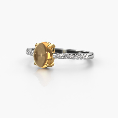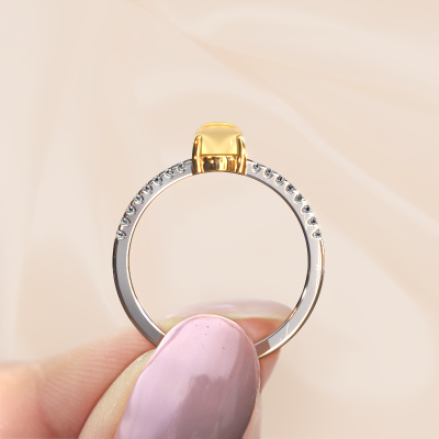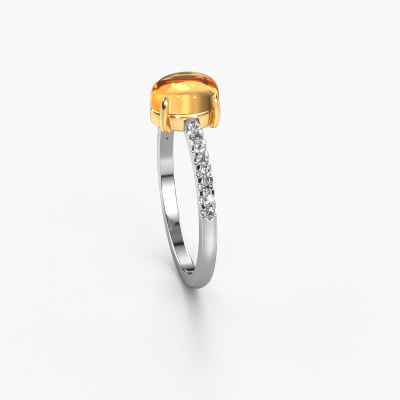 In diesem Foto ist der Weißgold Becky Ring mit einem 7x5 mm oval cabochon Citrin besetzt. Cabochon bedeutet, dass ein Citrin zuerst geformt, nicht facettiert wird. Nämlich in eine bestimmte Form wie einen Tropfen, ein Herz oder ein oval cabochon. Anschließend wird er poliert, bis der Edelstein eine Runde Oberfläche hat. Ein Cabochon-Edelstein ist ein atemberaubender, nobler Blickfang, der perfekt zu einem zeitgenössischen wie auch zu einem Vintage-Stil passt. Unsere erfahrenen Goldschmiede formen den Edelsteine Ring bis zur Perfektion und machen ihn einzigartig. Der Cabochon Citrin ist so gefasst, dass seine einzigartigen Qualitäten verstärkt werden. Wie gefällt Ihnen dieser Fantasie Weißgold Ring? Passen Sie diesen Becky Ring einfach mit unserem Online-Tool an. Anschließend wird Ihr persönlicher, Edelsteine Becky Ring in Handarbeit von unseren Goldschmieden angefertigt. Edelmetalle und Edelsteine können nach Ihren Wünschen angepasst werden. Haben Sie spezielle Wünsche, die in unserem Online-Tool nicht verfügbar sind? Setzen Sie sich mit uns in Verbindung. Wir passen Ihren persönlichen Fantasie Ring nach Ihren Wünschen an.Durch die Kombination modernster Technik mit uralter Handwerkskunst können wir alle Ringe in unserem eigenen Studio anfertigen. Jedes Schmuckstück wird auf Anfrage gefertigt. Das ist vorteilhaft, weil wir Ihnen dadurch einen Preis anbieten können, den Sie nirgendwo anders finden.Um es einfacher zu machen, bieten wir eine kostenlose 30-tägige Rücksendung.