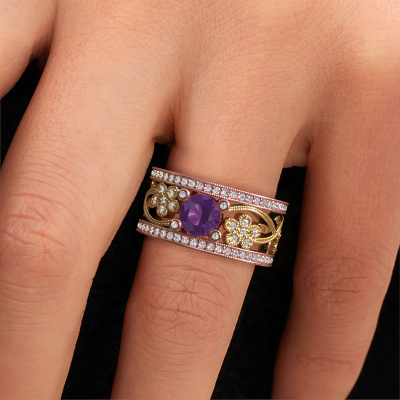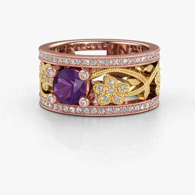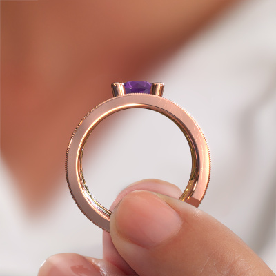 Haben Sie einen Vintage-Fetisch? Dann passt dieser Roségold Ring perfekt zu Ihnen. Er hat ein zeitgemäßes Design, basierend auf klassischen Designs. Ein leicht romantisches, außergewöhnliches Design! Sogar noch mehr, wenn Sie ihn nach Ihren Wünschen anpassen. Dieser zierliche Severine Ring ist mit exquisiten Amethysten besetzt. Wie Sie sehen können, können Sie einfach einen Edelstein wählen, der zu Ihrem Stil passt. Jeder Edelstein wird sorgfältig von unseren Händlern ausgewählt, die auf der ganzen Welt verteilt sind. Nichts als die besten Edelsteine für unseren erfahrenen Goldschiede! Schließlich ist es seine Krönung!Unsere Goldschmiede kreieren Ihren individuellen Ring leidenschaftlich, mit größter Sorgfalt und nach Ihren Wünschen. Das Roségold Ring, wie hier abgebildet, kann mit unserem Online-Tool individuell angepasst werden. Bitte fragen Sie unsere Schmuckdesigner um Hilfe, wenn Sie Änderungen wünsche, die in unserem Online-Tool nicht verfügbar sind. Gerne beantworten wir Ihnen alle offenen Fragen.Nach Erhalt Ihrer Bestellung beginnen unsere Goldschmiede mit Leidenschaft den kreativen Prozess und fertigen Ihren Ring in unserem eigenen Studio. Da wir keine großen Lager haben, werden diese Kosten nicht an Sie weitergegeben. Unsere Preisgestaltung ist der Beweis dafür! Wir bieten Schmuck zum niedrigsten Preis, garantiert.Um es einfacher zu machen, bieten wir eine kostenlose 30-tägige Rücksendung.